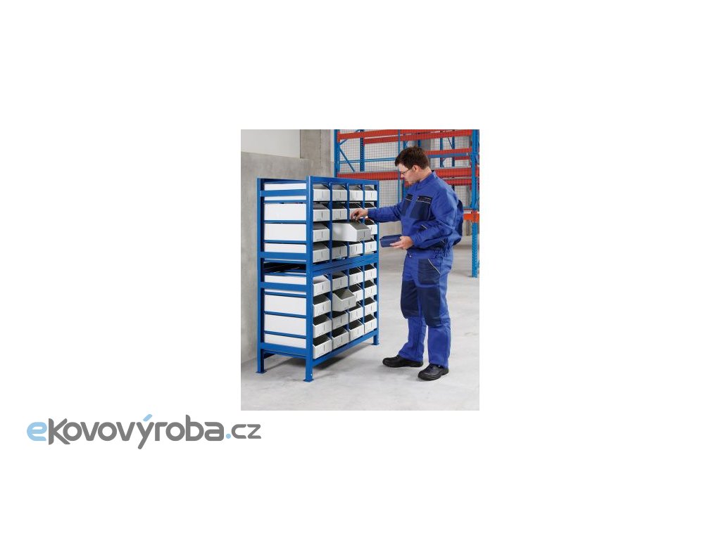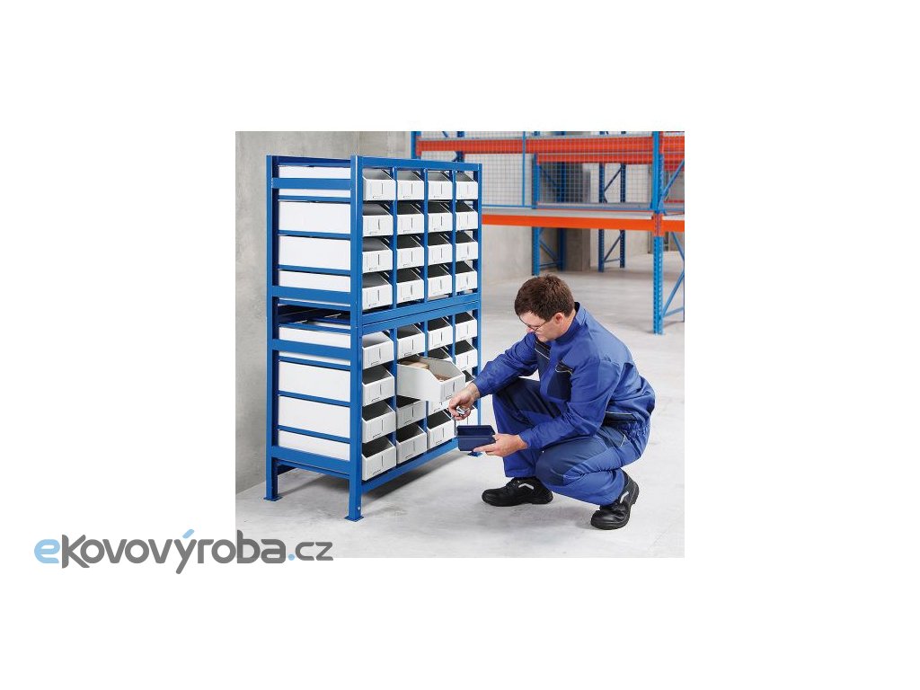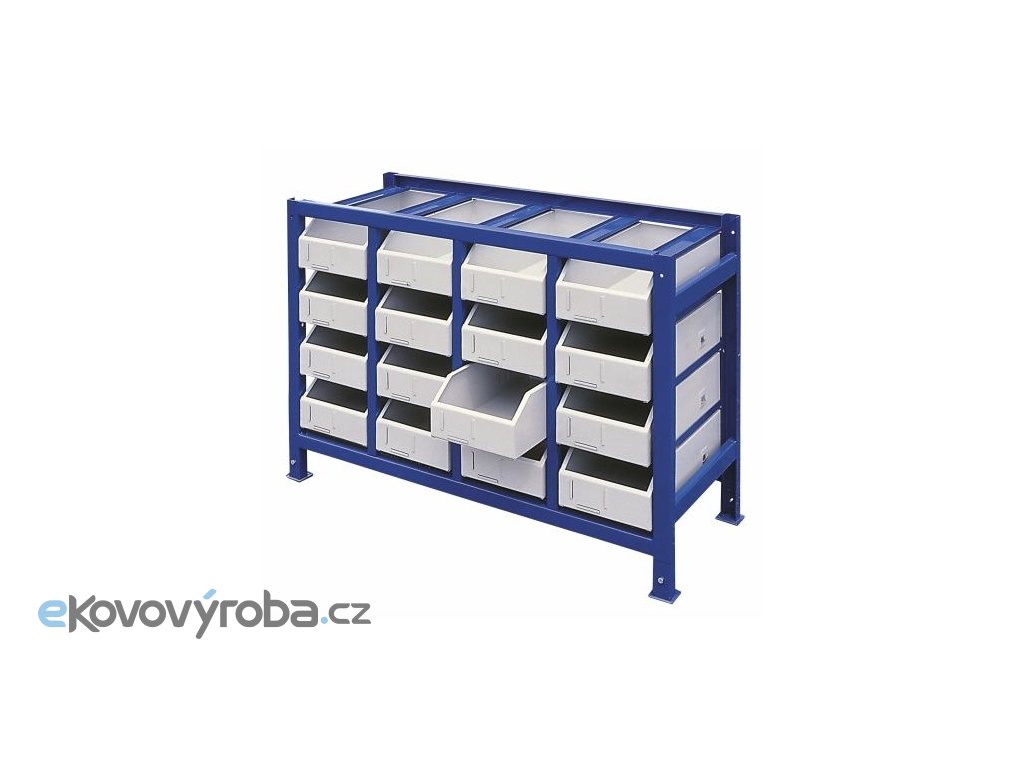Regál včetně zásuvek je vyroben z ocelového plechu. Lehký pohyb zásuvek i při maximálním zatížení je zajištěn posuvem po kuličkách. Zásuvky jsou opatřeny zarážkami proti posunutí. Zásuvky jsou na přední straně sešikmené – umožněno snazší vyjímání skladovaných předmětů. Vhodné především pro skladování drobných nástrojů a nářadí.