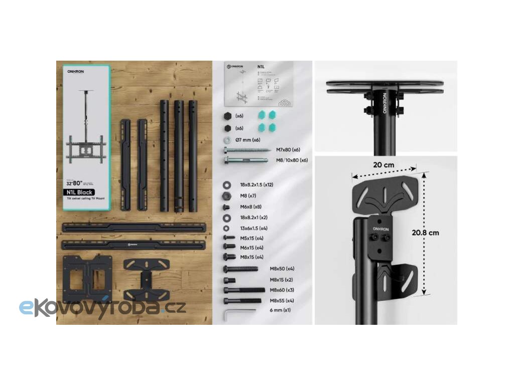 Stropní držák pro zavěšení Tv Onkron N1L podporuje VESA standardy: