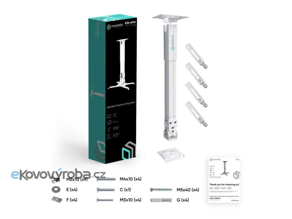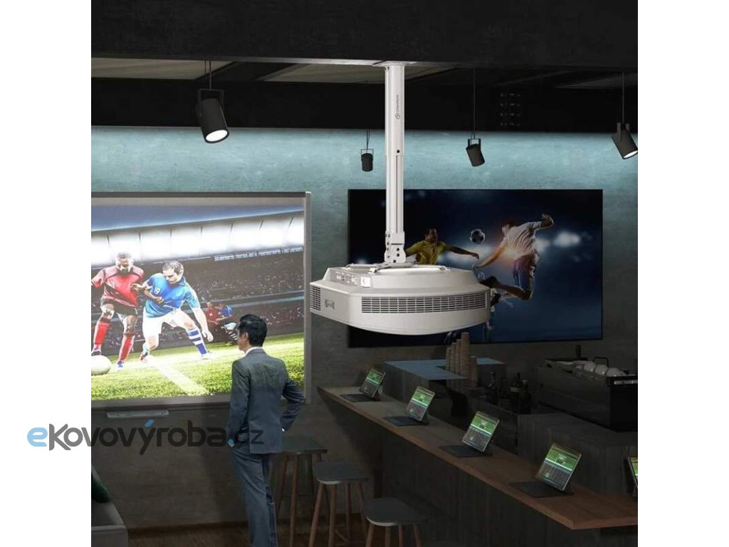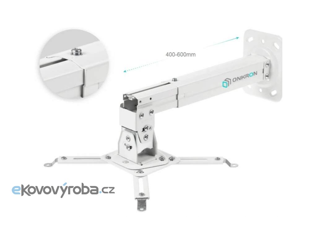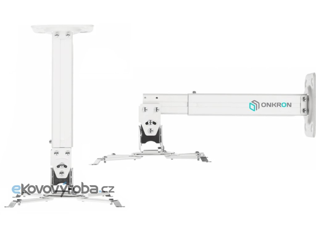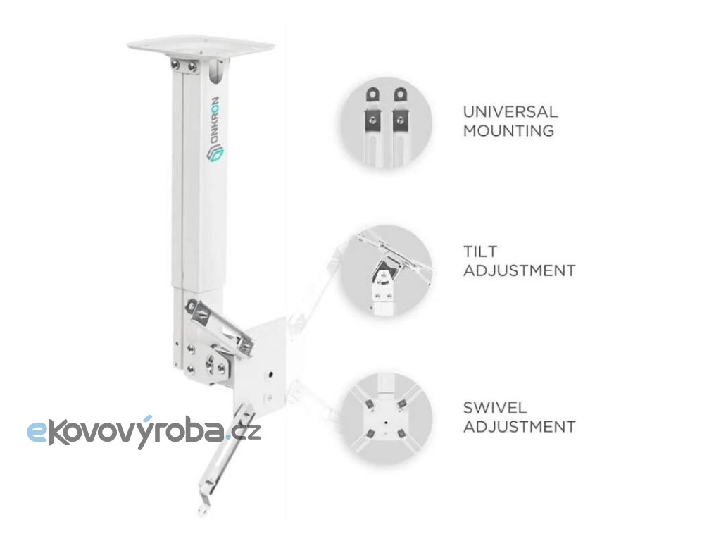 Držák na projektory s uchycením na strop nebo na zeď, nastavení délky 400-600 mm, otočný +8° / -8°, náklon +30° / -30°, korekce roviny +30° / -30°, rozteč úchytů 240-340 mm, instalační materiál, kvalitní konstrukce, systém pro vedení kabeláže, nosnost 10 kg