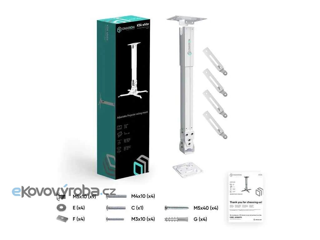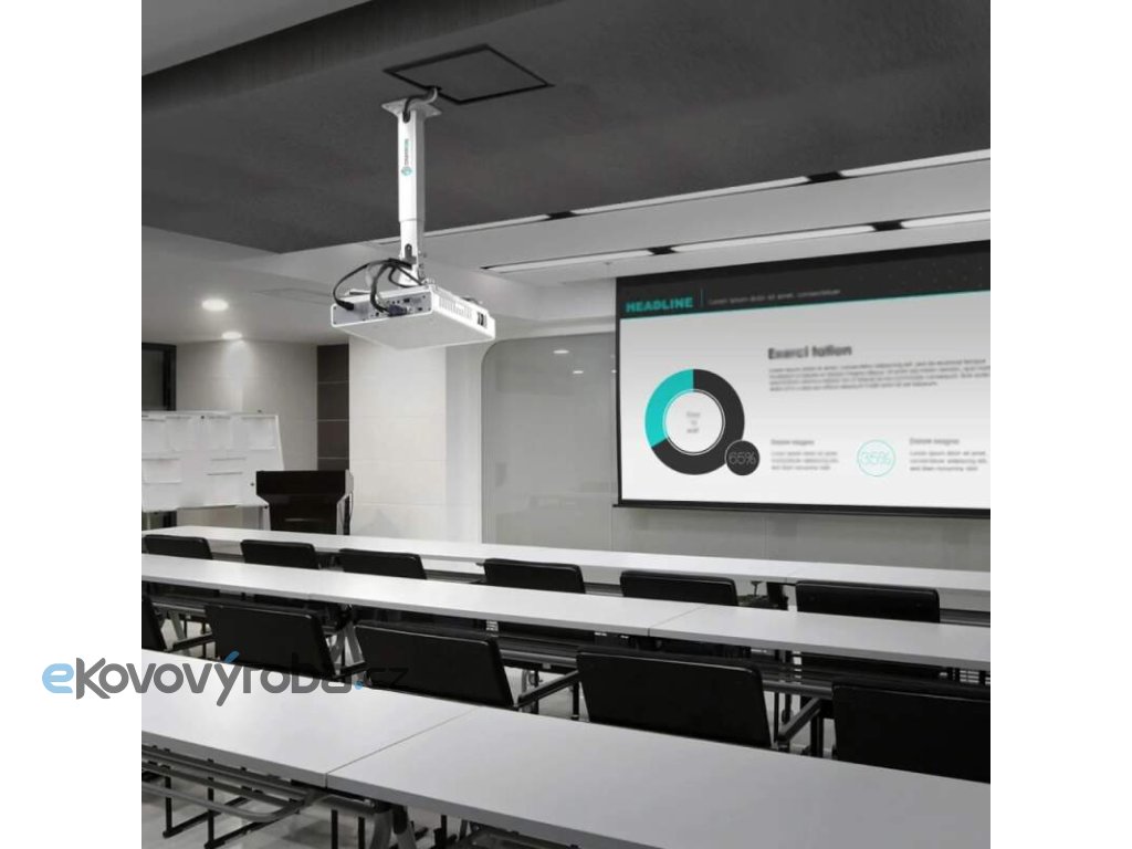 Kvalitní držák pro projektory s možností instalace na strop nebo na zeď, délkové nastavení 400-600 mm, dvě osy naklápění = dopředu a dozadu +/- 30° a do boků +/- 30°. Polohu projektoru je možné po zavěšení upravit i mírným otáčením do stran až o +/- 8°. Konstrukce je uzpůsobena pro vedení kabeláže. Nosnost držáku je 10 kg, balení obsahuje instalační materiál. Bílé provedení.