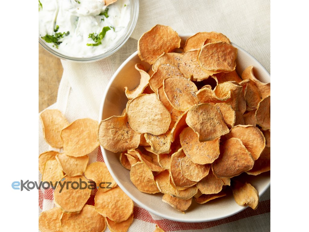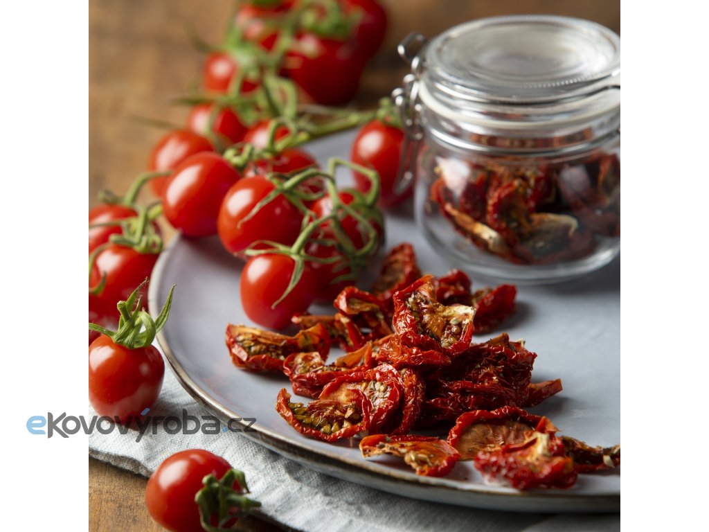 Zvýšený příkon a rozsah nastavení teploty sušení umožňuje v sušičce efektivně sušit bylinky, ovoce s vysokým podílem vody, maso, nebo na speciálním platu bez otvorů i ovocné placky.