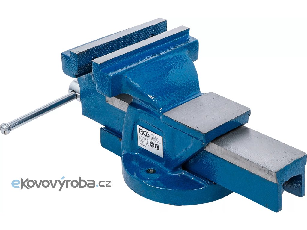 Svěráke vyroben ze speciální litiny, což zajišťuje stabilitu a dlouhou životnost. Upínací čelisti o šířce 125 mm jsou tvrzené a zdrsněné pro bezpečné uchycení obrobků.