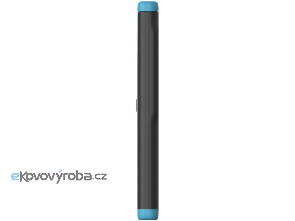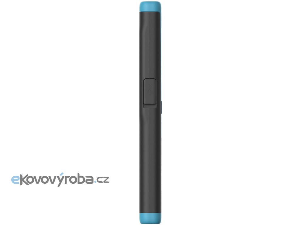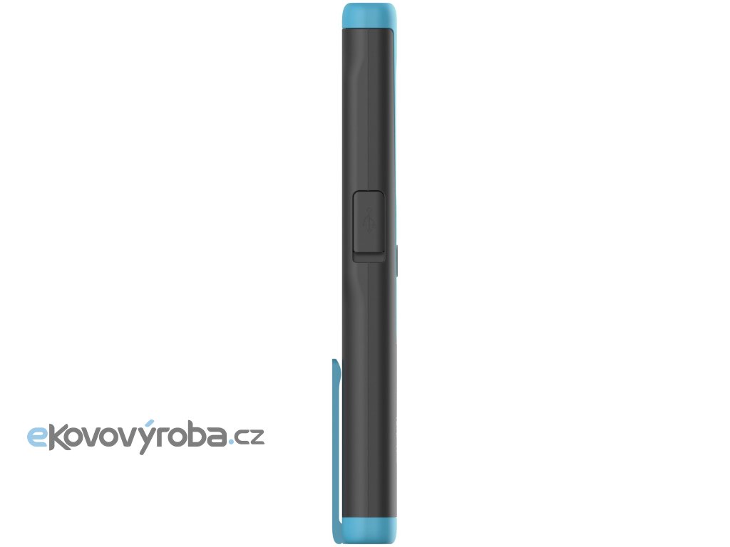 Odolná plastová konstrukce s pogumovaných povrchem a integrovanou sponou pro připnutí na opasek apod.