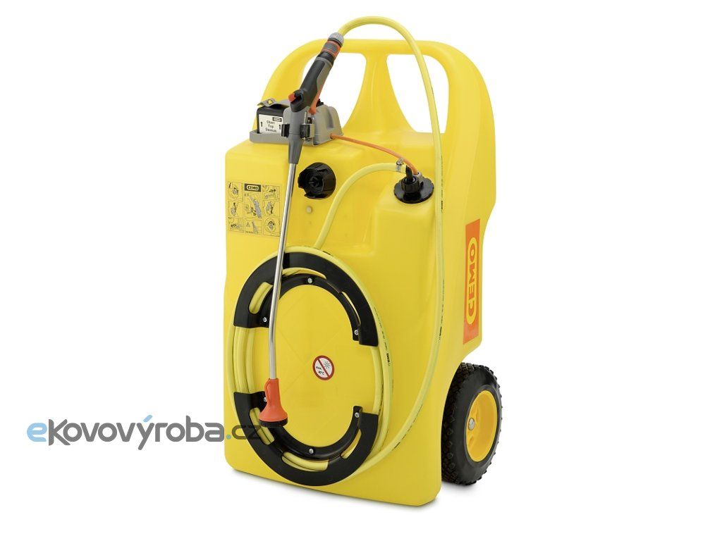 Vozík pro zavlažování o objemu 60 litrů. Uvnitř vozíku je ponorné čerpadlo s výkonem 25 l/min bez AKU článku a nabíječky. Zavlažovací hadice má délku 6 metrů 1/2 coulu s kropící hubicí. Jedná se tak o praktické mobilní zařízení pro zavlažování v zónách, kde není možné použít větší techniku