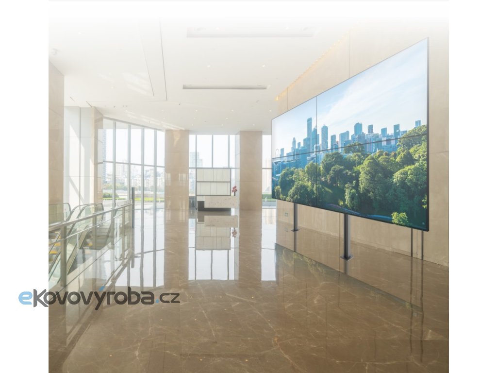 Profesionální podlahový televizní stojan na 4 obrazovky 50-62", řazení 2x2, precizní doladění pozic obrazovek, aby přesně navazovali na další bez použití nářadí, nastavení výšky obrazovek, fixace obrazovek na stojanu. Podpora VESA standardů 75x75 až 600x400, nosnost 210kg, polička na příslušenství (počítač, notebook apod), systém pro vedení kabeláže. Nejvyšší kvalita, profesionální televizní stojan s důrazem na detail, vynikající estetika, záruka 5 let.