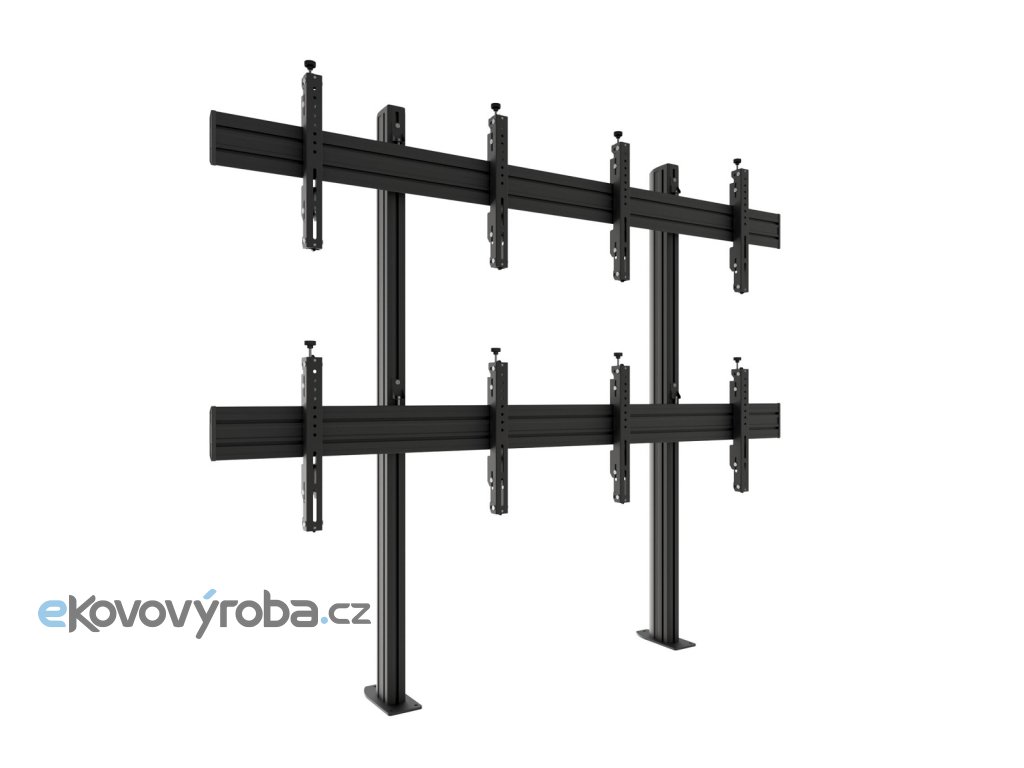 Profesionální stojan na 4 Tv monitory 50-62" pro vytvoření televizní stěny, precizní doladění pozic obrazovek, VESA 100x100 až 600x400, nosnost 210kg