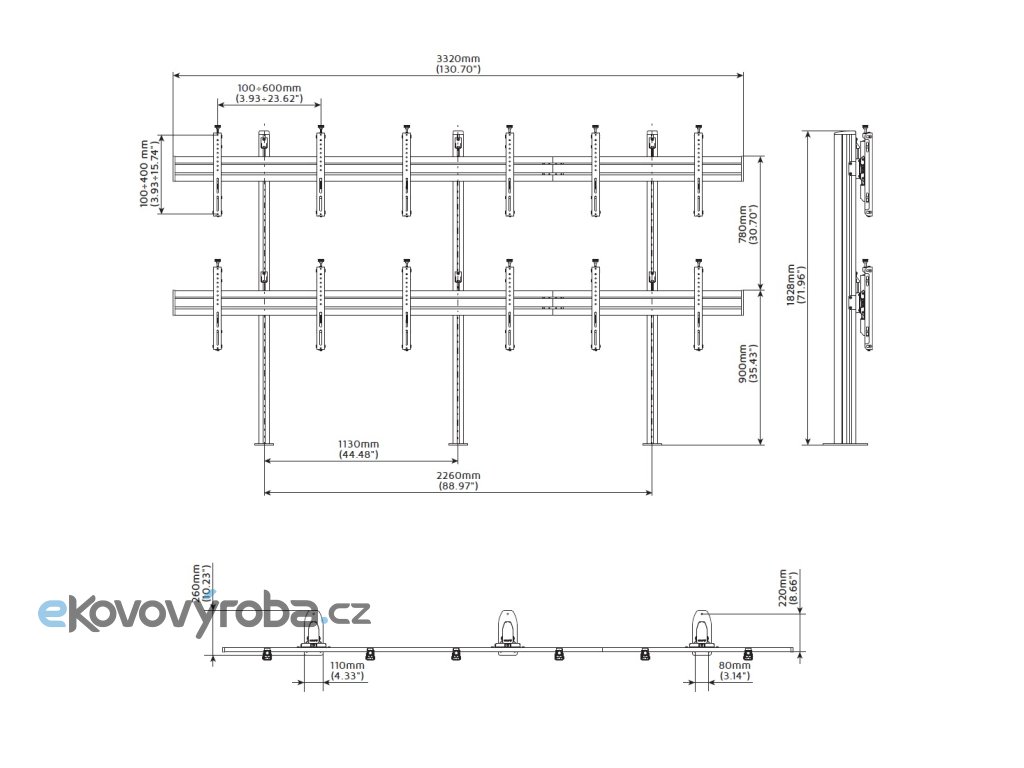 Televizní stojany řady EDBAK VWSA pro vytvoření televizních stěn s různým počtem obrazovek. Prémiová kvalita, profesionální v každém detailu, moderní dizajn v hodný pro každý prostor. Televizní stěna Edbak VWSA3257L je určena na 6 obrazovek s úhlopříčkou 50-57", řazení 3x2 (3 nahoře a 3 dole). Nejvyšší bezpečnost a stabilita, systém pro vedení kabeláže, nosnost 290kg. Materiál hliník. Záruka 10 let.