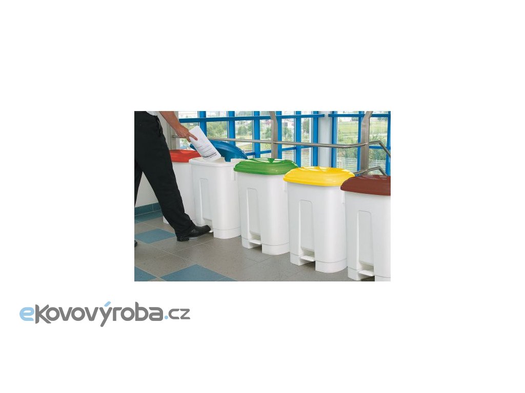 Vyrobeno z recyklovatelného plastu Polypropylenu (PP). Robustní odpadkový koš s nášlapným mechanismem. Vybaveno rámečkem pro uchycení pytle. Barevná víka umožňují použití na třídění odpadu. Zaoblené tvary usnadňují čištění. Kónická konstrukce umožňuje stohování. Vhodné pro průmysl, administrativu nebo i gastronomii.