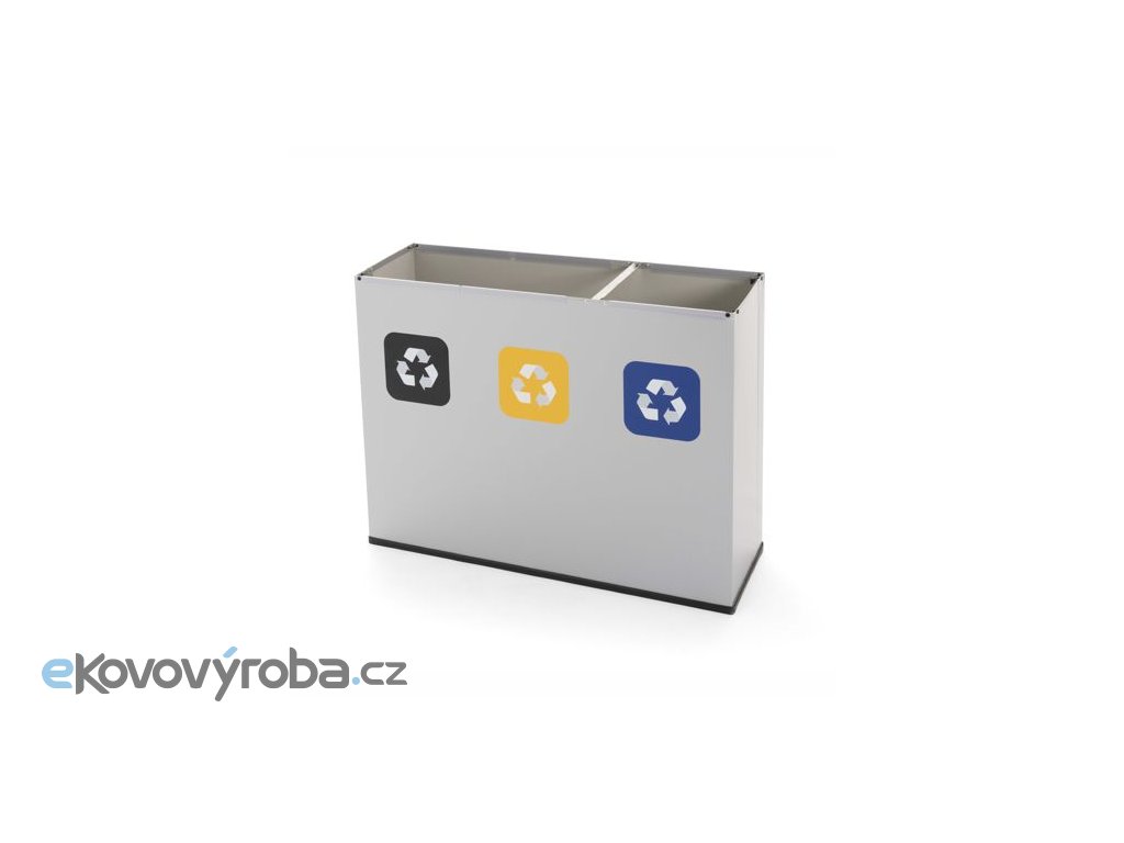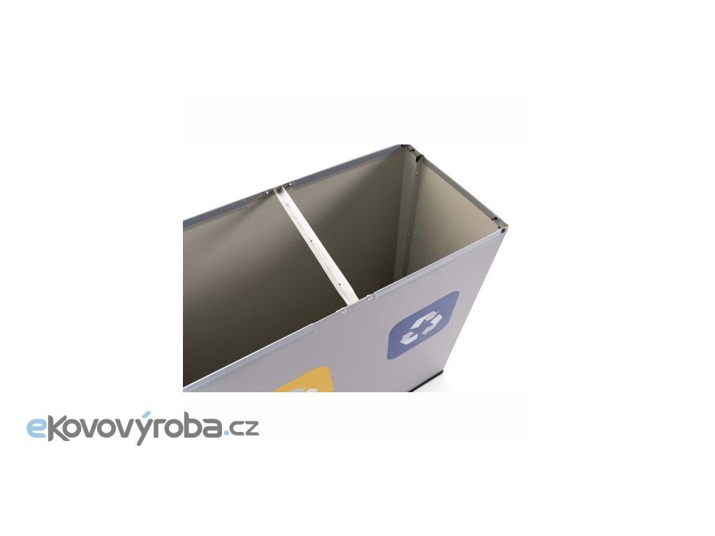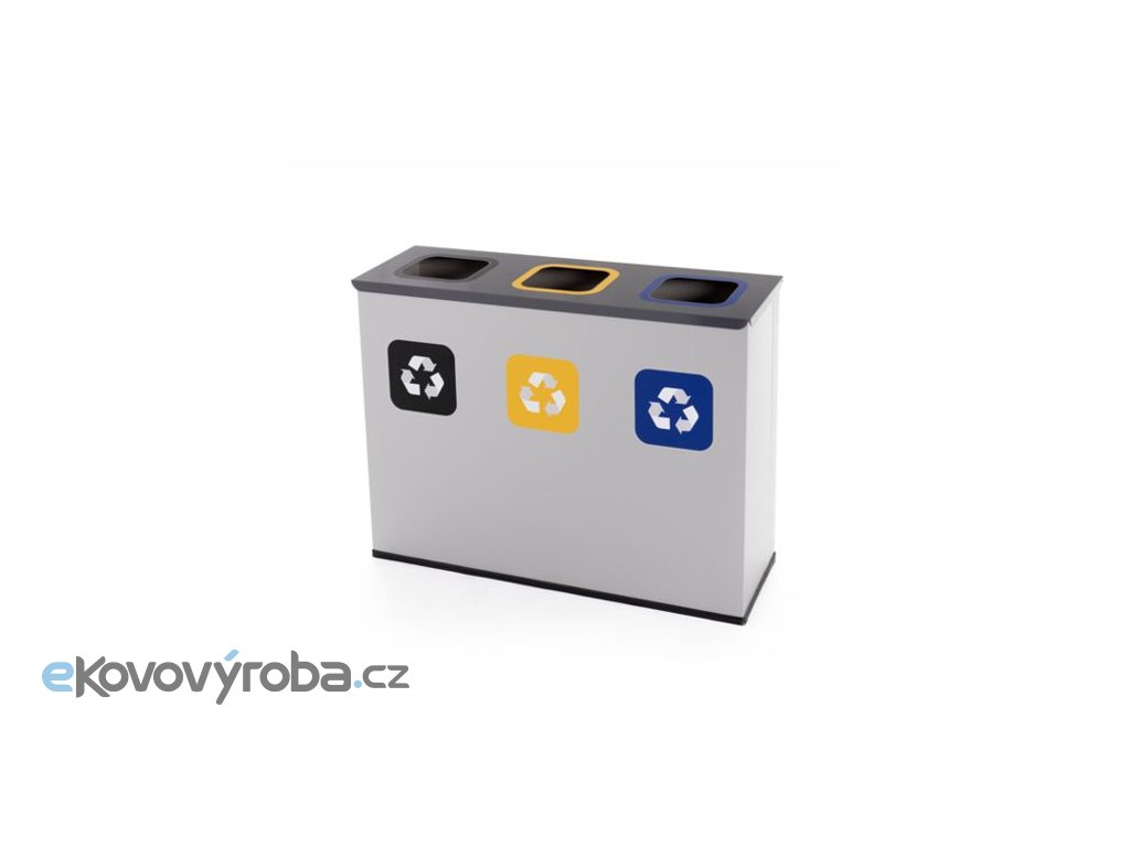 Vyrobeno z kvalitní oceli. Hranaté stabilní koše vhodné pro třídění odpadu. Koš je opatřen lištou pro uchycení pytlů. Koše jsou určeny primárně pro vnitřní použití. Koš je vybaven barevně odlišenými vhozy a polepy. Povrchová úprava provedena práškovou barvou. Pryžová protiskluzová základna.