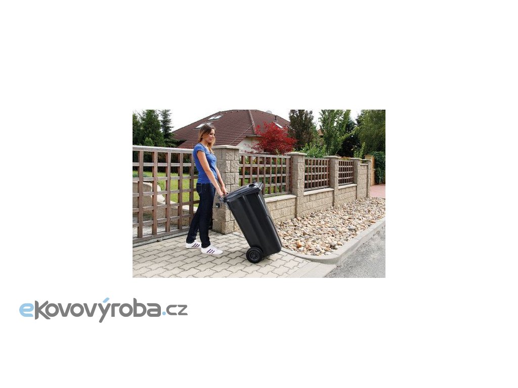 Plastová nádoba o objemu 120 l s víkem a dvěma kolečky. Vyrobeno z HDPE. V souladu s EN 840. Odolné vůči UV záření, chemickým a biologickým vlivům nebo mrazu. Hladké povrchy zabraňují ulpívání odpadu. Výrobní materiál neobsahuje kadmium a může být znovu granulován. UPOZORNĚNÍ NA SKLADOVÁNÍ Štosováni dvou kolových plastových nádob je možné pouze dočasně pro potřeby uskladnění během převozu nádob. Po vykládce je zapotřebí nádoby rozštosovat a uskladnit na místo chráněné před přírodními vlivy. Zajistěte aby do nádoby nezatékala voda – nádoba naplněná vodou daleko přesahuje max. přípustnou hmotnost nádoby!