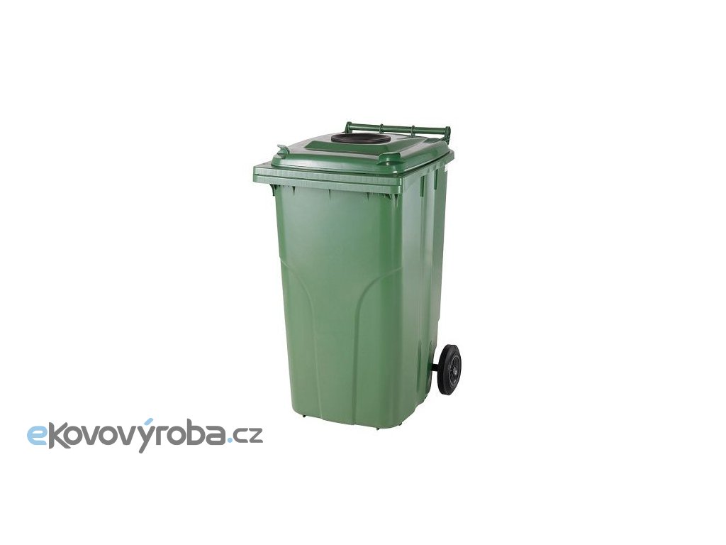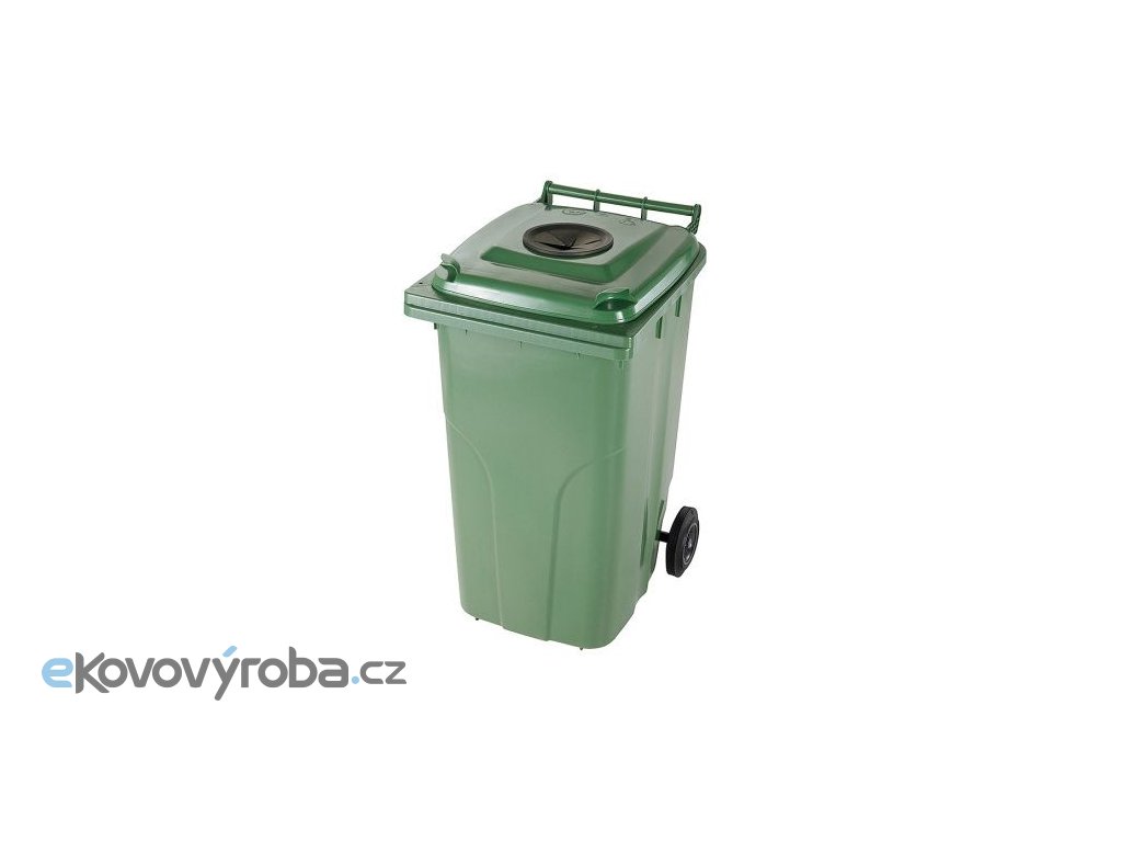 Vyrobeno z plastu – Polyetylen s vysokou hustotou (HDPE). Vybaveno vhozem dle druhu odpadu – plasty 160-190 mm, sklo 160-190 mm, papír 350x175 mm. Standardně dodáváno se dvěma gumovými kolečky – průměr 200 mm. Max. možné zatížení – 110 kg. V souladu s EN 840. Odolné vůči UV záření, chemickým a biologickým vlivům nebo mrazu. Hladké plochy zabraňují ulpívání odpadu. Výrobní materiál neobsahuje kadmium a může být znovu granulován.