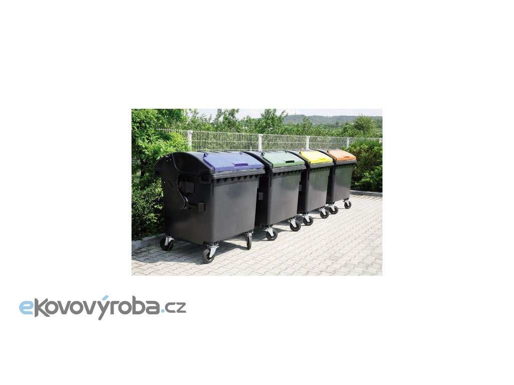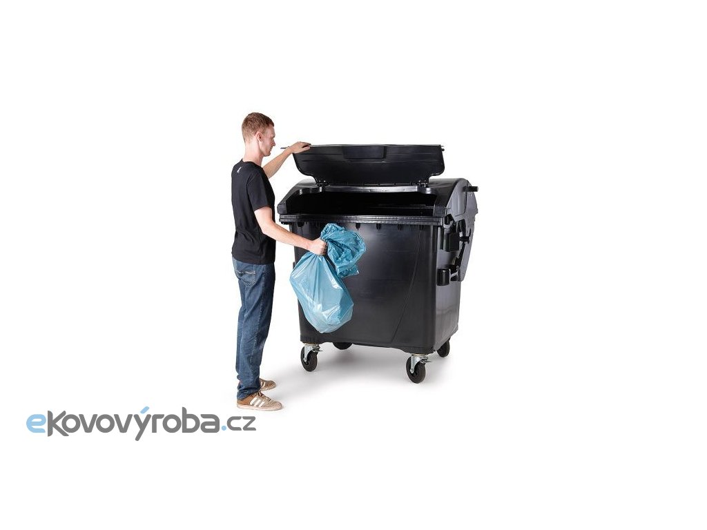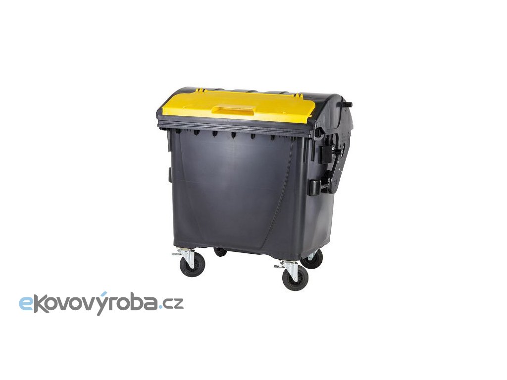 Plastový kontejner s kulatým víkem s víkem ve víku 1100 l. Vyrobeno z plastu – Polyetylen s vysokou hustotou (HDPE). Odklopné víko je opatřeno menším víkem – víko ve víku. Standardně dodáváno se dvěma bržděnými kolečky – průměr 200 mm. Možnost dodání s centrální brzdou. Max. možné zatížení – 510 kg. V souladu s EN 840. Odolné vůči UV záření, chemickým a biologickým vlivům nebo mrazu. Hladké plochy zabraňují ulpívání odpadu. Výrobní materiál neobsahuje kadmium a může být znovu granulován. Možnost dokoupení dětské pojistky.