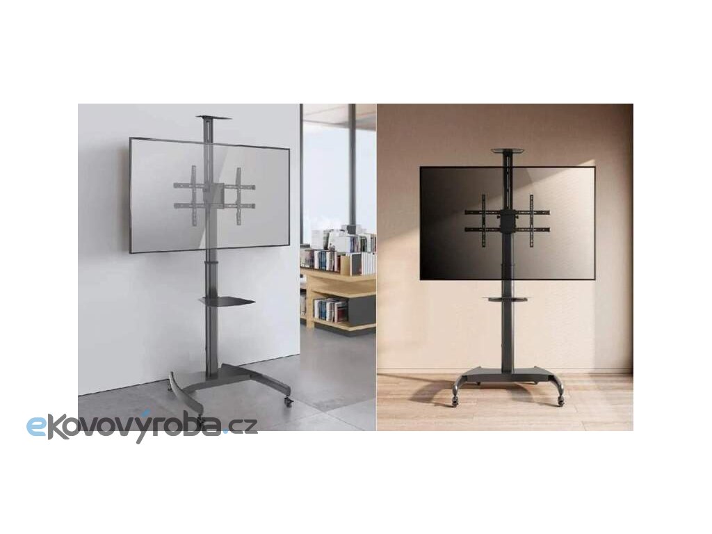 Kvalitní podlahový stojan na TV 37" - 70", výška 1325-1625 mm, naklápění +10° / -10°, pivot 0° / -90°, polička 430x335 mm, horní polička 285x150 mm, kolečka s aretací, vedení kabeláže, podstava 840x710 mm, VESA standardy 200x100 až 600x400, nosnost 50kg