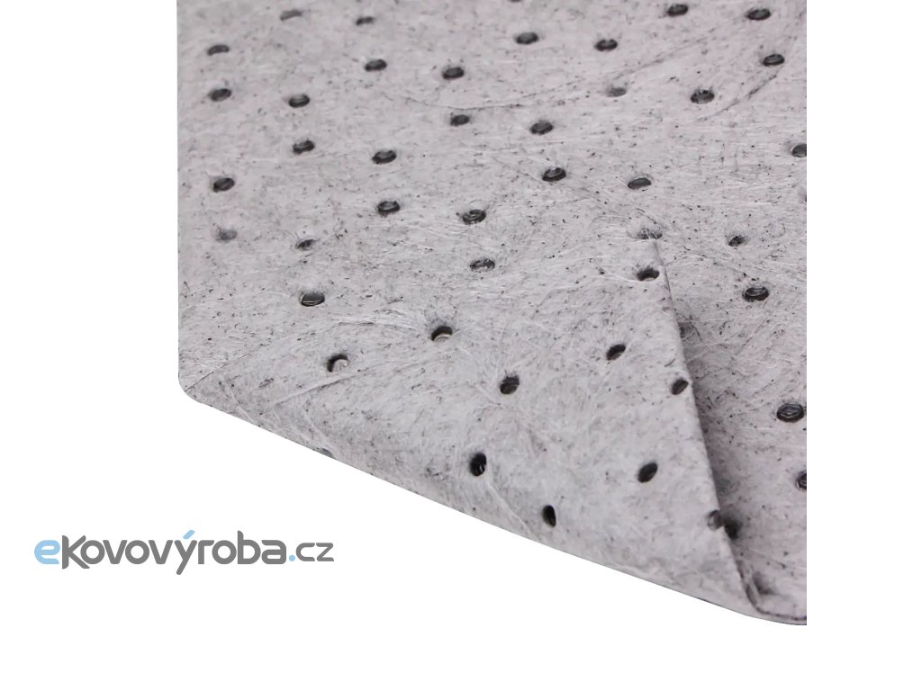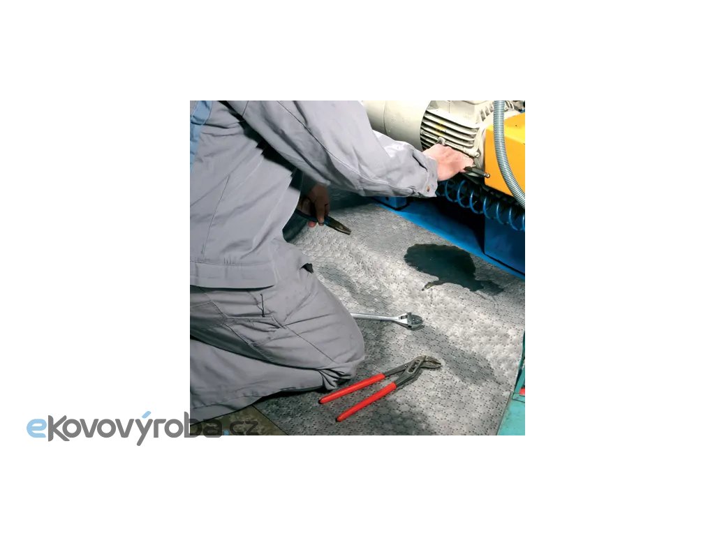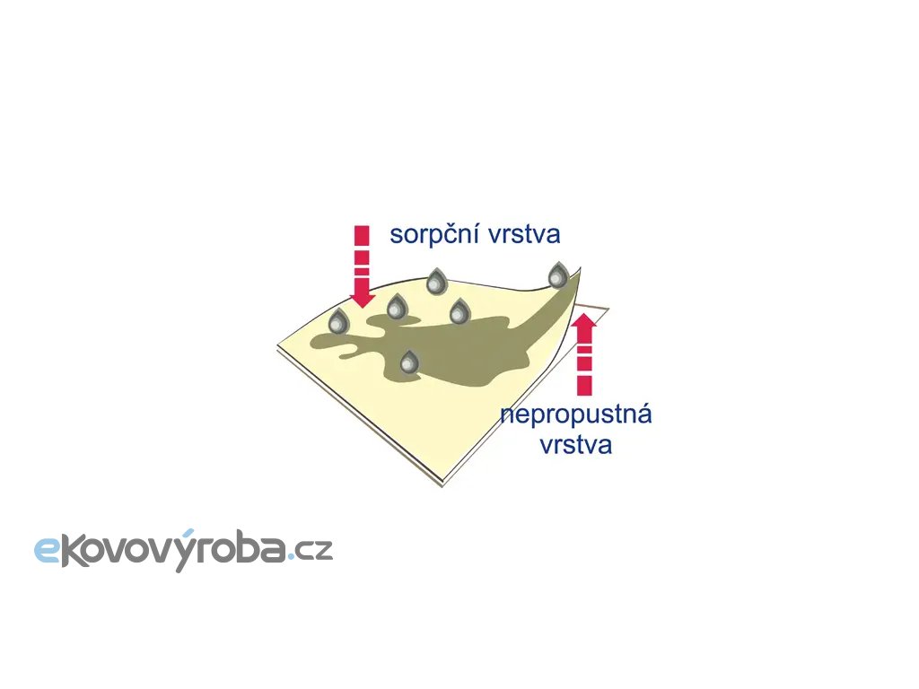 Na výrobu vysokého sorpčního koberce byl použit materiál polyetylen, polypropylen, který se vyznačuje chemickou a mechanickou odolností. Koberec patří do produktové řady MEDIUM. Koberec je velmi účinným prostředkem k zachycení úkapů, ke kterým dochází na velké ploše. Chrání podlahu pod stroji nebo na frekventovaných chodbách, zamezuje vzniku kluzkých ploch při únicích nebezpečných kapalin. Roli koberce dodáváme v rozměrech 80 cm × 40 m. Třívrstvý kompozitní materiál SMS je tvořen sorpční vrstvou mikrovlákenné netkané textilie Meltblown a dvěma zpevňujícími vrstvami netkané textilie typu Spunbond. Všechny netkané textilie jsou spojené thermoplastickým bodovým pojením. Krycí vrstva Spunbondu zajišťuje vysokou trvanlivost, pevnost a odolnost proti otěru. Nepouští vlákna. Tím je značně zlepšená životnost sorbentu při dosažení stejných sorpčních vlastností jako u pojeného sorbentu. |