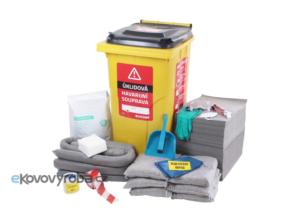 Havarijní souprava je složena tak, aby se s její pomocí mohly jednoduše, rychle a účinně zlikvidovat úniky běžných provozních neagresivních kapalin a následně vše uklidit. Obsahuje univerzální sorpční prostředky, které sají vodu, oleje a neagresivní chemické látky. Součástí soupravy jsou ochranné pomůcky a těsnicí prostředky. Díky havarijní soupravě lze předejít závažnějším ekologickým haváriím a významným škodám na majetku. |
