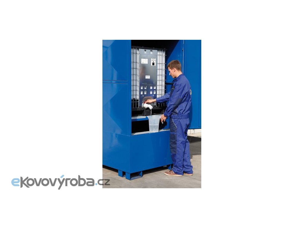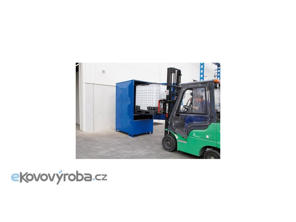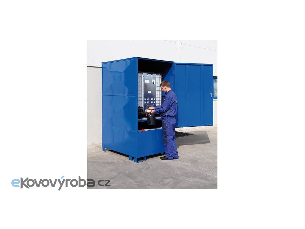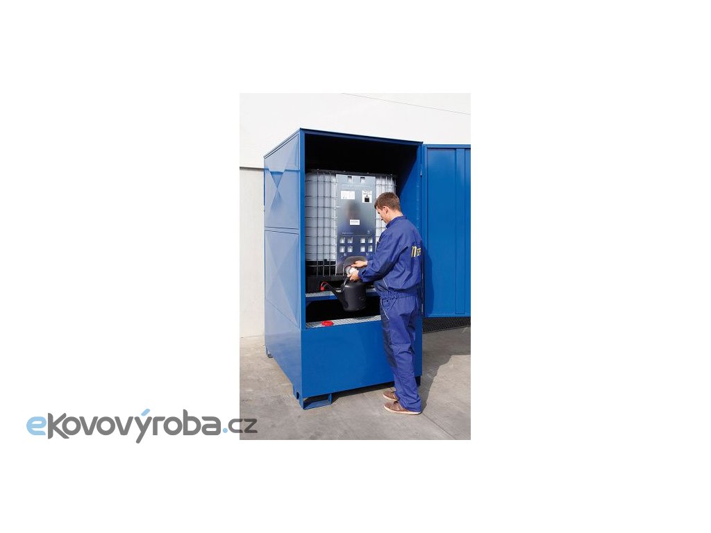 Ocelová krytá záchytná vana pro 1 IBC kontejner. Vyrobeno z kvalitního ocelového plechu a ocelových profilů. Vybaveno jednokřídlými vraty pro zajištění pohodlného přístupu ke skladovaným nádobám. Vybaveno pro manipulaci prostřednictvím VZV techniky. Robustní konstrukce pro bezpečné uložení IBC kontejneru. Vybaveno žárově zinkovaným roštem. Rošt je v přední části vyjímatelný.