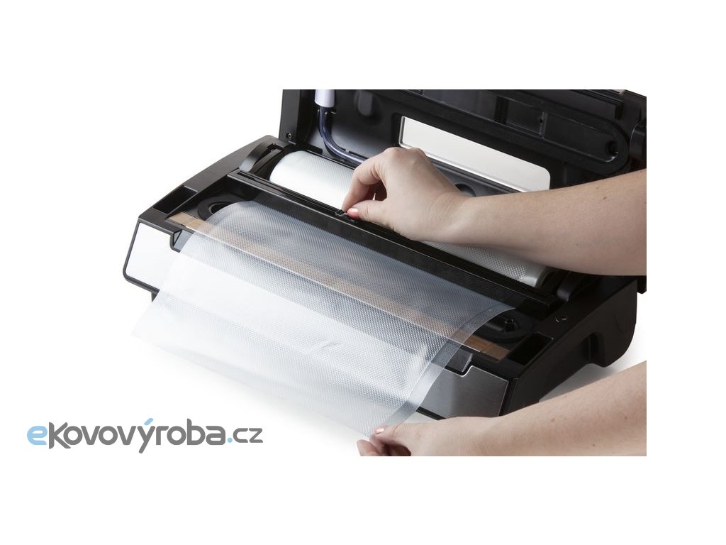 - Zásobník na roli fólie až do šířky 30 cm uvnitř přístroje se snadným odvíjením