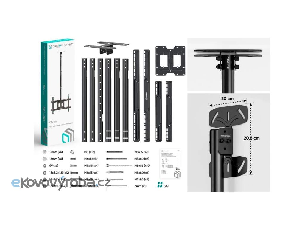 Stropní držák pro zavěšení Tv Onkron N2L podporuje VESA standardy: