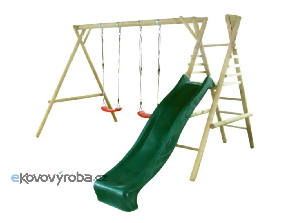 Dětská dřevěná houpačka Marimex 11 + modrá skluzavka