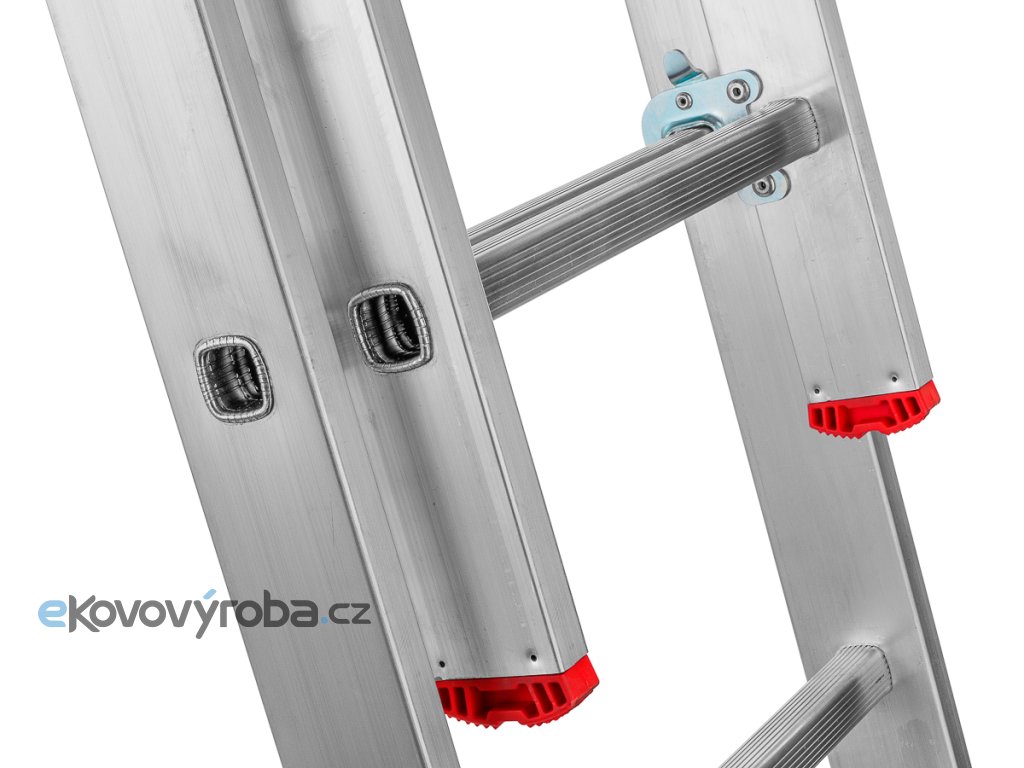 Trojdílný žebřík 3x9 je vyroben z kvalitního odlehčeného hliníku. Díky lisovanému spojení příček s bočnicemi je zajištěná vysoká tuhost a životnost žebříku.