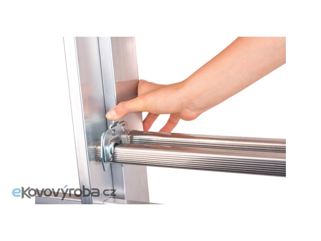 Dvoudílný žebřík 2x8 je vyroben z kvalitního odlehčeného hliníku. Díky lisovanému spojení příček s bočnicemi je zajištěná vysoká tuhost a životnost žebříku.