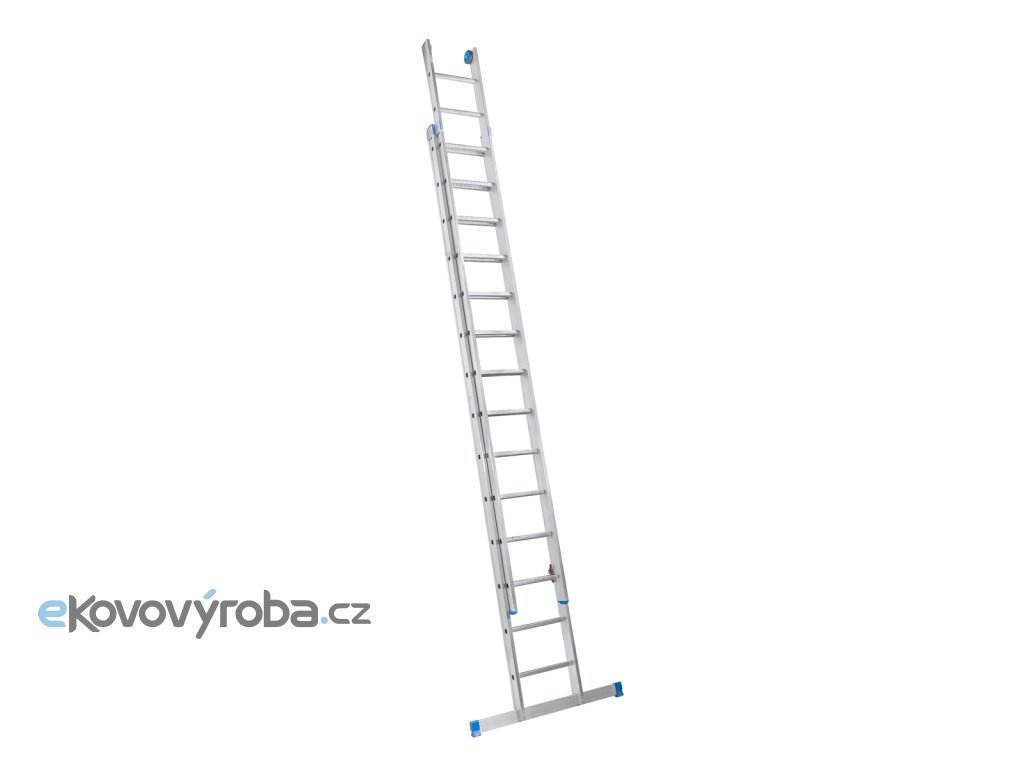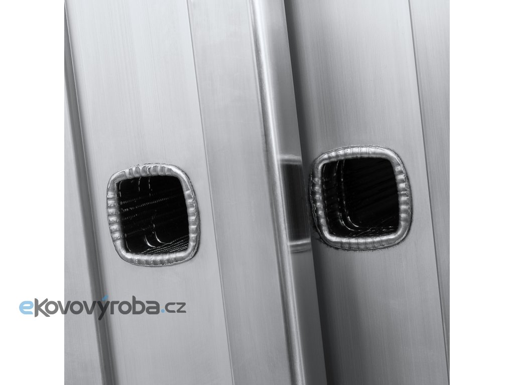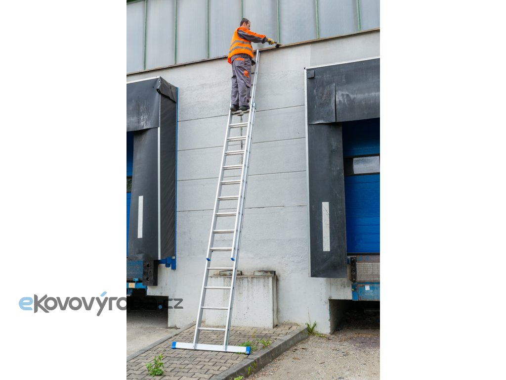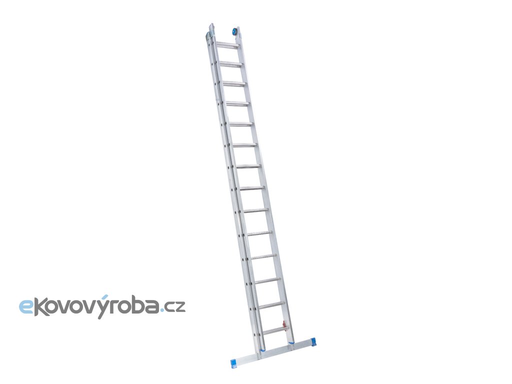 Dvoudílný profesionální žebřík 2x14 PROFI je vyroben z kvalitního odlehčeného hliníku. Díky lisovanému spojení příček s bočnicemi je zajištěná vysoká tuhost a životnost žebříku.