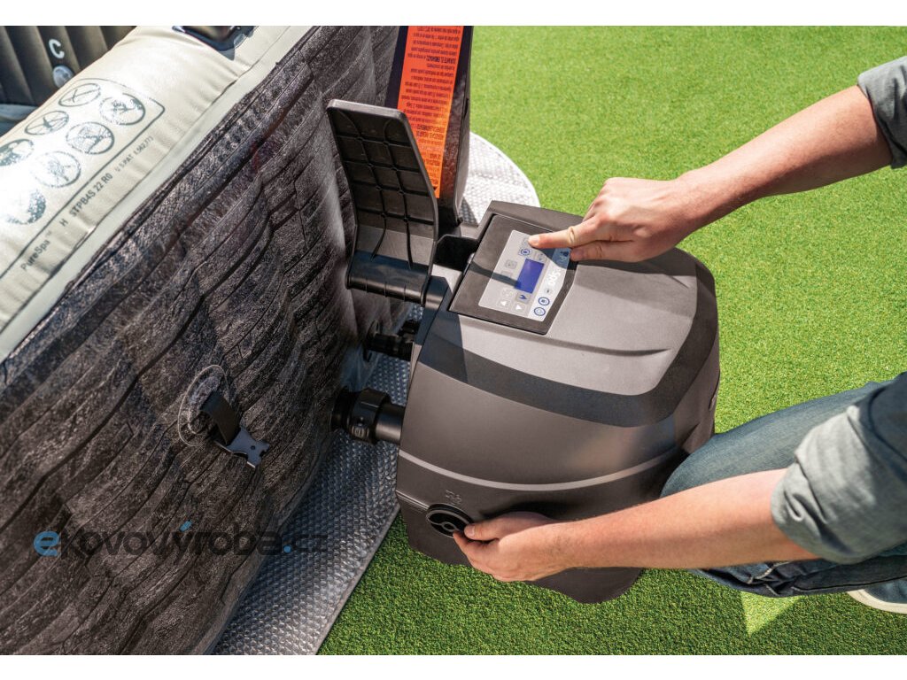 - Řídící a filtrační jednotka není zabudována do pláště vířivky