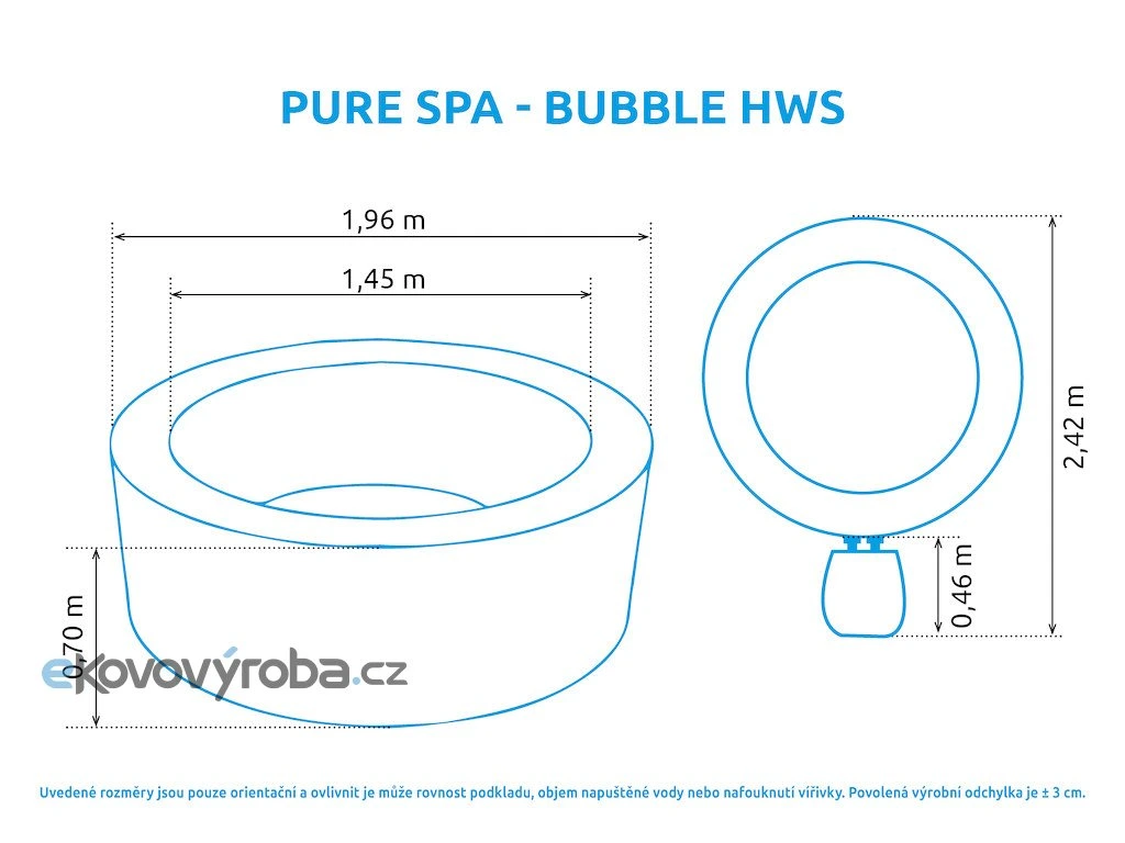 Vnější průměr: 196 cm (po naplnění vodou, tolerance ± 5%)