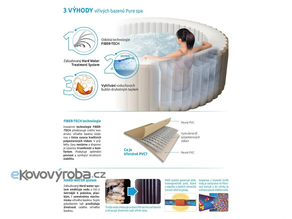 Konstrukce vany: 48 FIBER-TECH BEAMS (silná polyesterová vlákna)