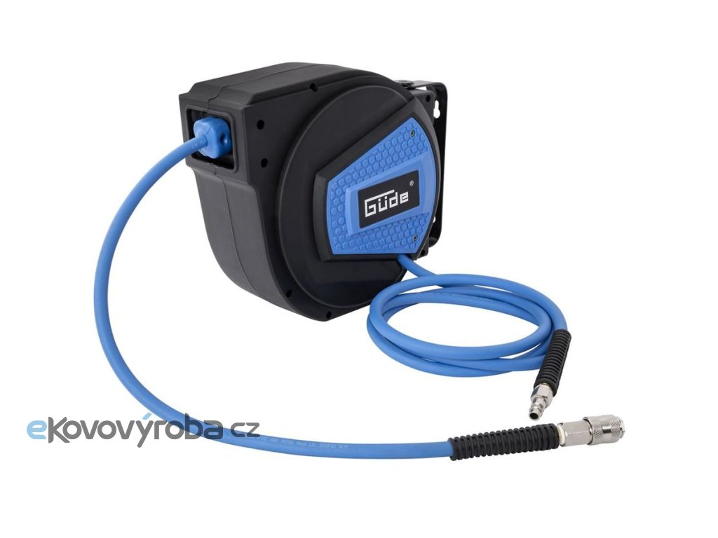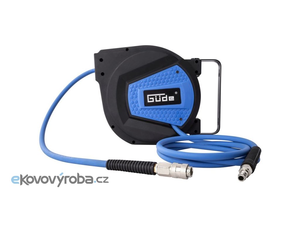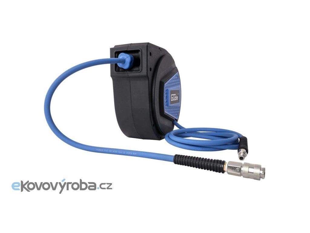 Samonavíjecí buben s 10m tlakovou hadicí, umožňující využití pneumatického nářadí a příslušenství i ve vzdálenějších částech dílny nebo garáže.