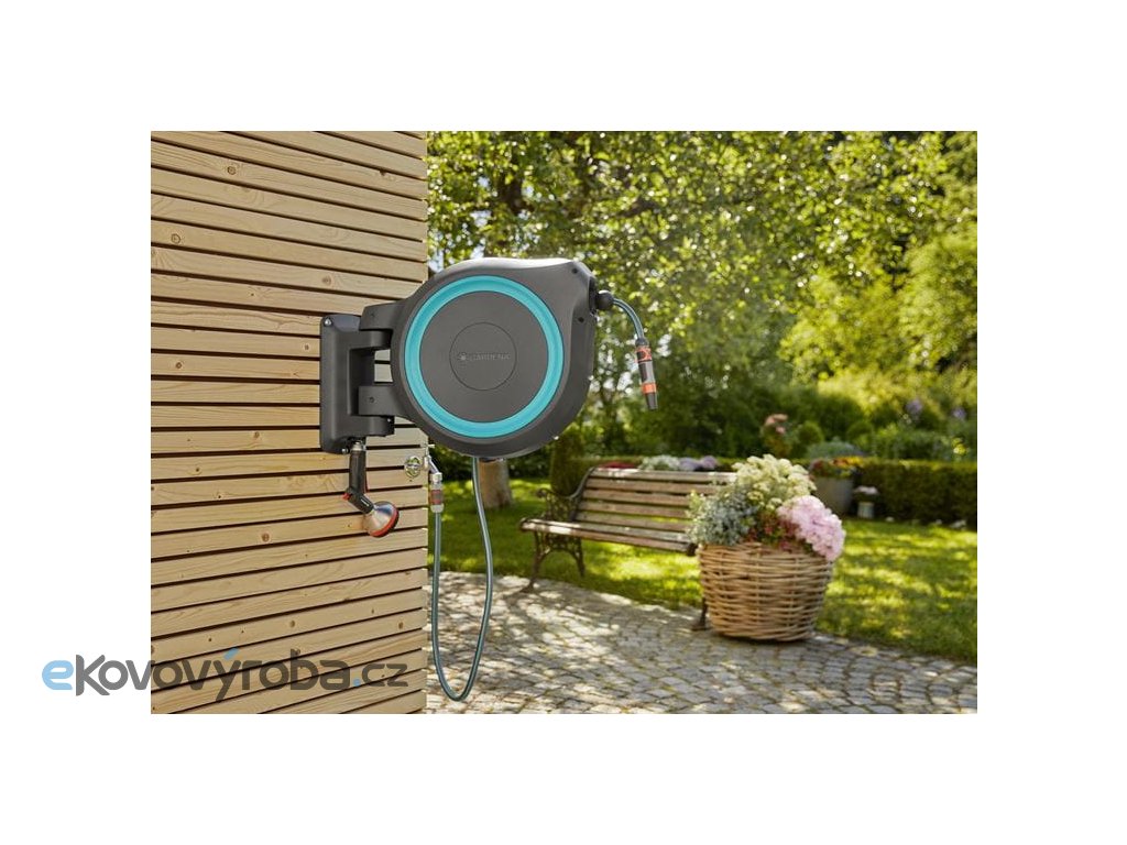 Robustní nástěnný držák umožňuje otáčet boxem na hadici o více než 180°, abyste se bez námahy dostali do všech koutů zahrady. Pro přímé použití jednoduše vytáhnete zahradní hadici na maximální délku 30 metrů. Zahradní hadice se po vytažení automaticky uzamyká po velmi krátkých vzdálenostech, a to znamená, že se s hadicí velmi snadno manipuluje.