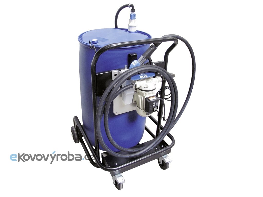 Bluetroll Mobil, čerpací systém pro sudy, skládá se z lakovaného podvozku s řízením, s Cematic Blue čerpacího systému BASIC AZV a příslušného sacího potrubí