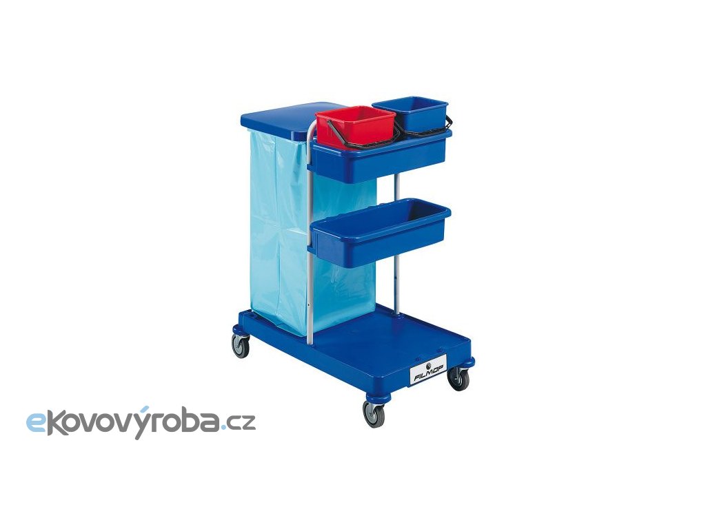 Vyrobeno z recyklovatelného polypropylenu (PP). Obsahuje vše potřebné pro úklid. Vybavení: 2x nádoba (6 l) na separaci odpadu, 1x držák na igelitový pytel 120 l (vhodný typ: 1077 – 120 l / není součástí výrobku), 1x odkládací plocha pro čisticí prostředky. Snadná a rychlá montáž.