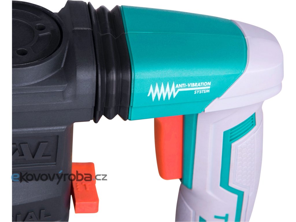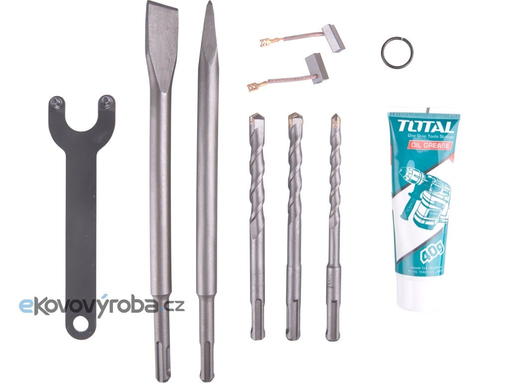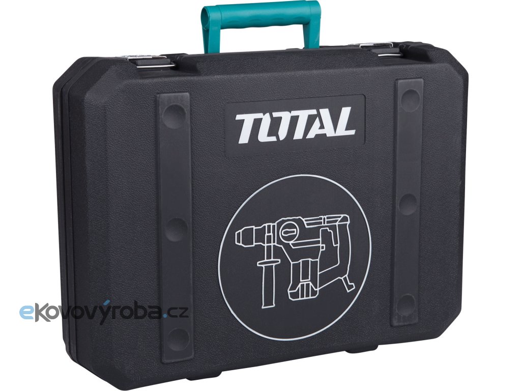 Vrtací a sekací kladivo určené pro náročnější vrtání do betonu a zdiva, lehké a středně těžké sekání do zdiva a betonu a osekávání obkladů či omítek. Toto kladivo se vyznačuje celokovovou masivní převodovkou. Polohovatelná rukojeť Vám umožní nastavit úchop tak, jak jej zrovna potřebujete. Síla úderu je 5,5J. Kladivo je vybaveno zámkem sekáče, které udržuje sekáč při sekání ve stejné poloze. Odpružená protiskluzová pogumovaná rukojeť snižuje vibrace při práci. Je vybaveno SDS Plus úchytem, 850 otáčkami/min a 4400 příklepy/min. Je dodáváno v kufru a součástí kladiva jsou i 3 kusy vrtáků a 3 kusy sekáčů. Doplňuje úspěšnou řadu vrtacích kladiv značky TOTAL Tools.