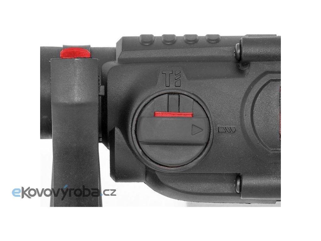 Konstrukce: rychloupínací sklíčidlo SDS-plus, hloubkový doraz, protiprachová krytka, ergonomicky tvarovaná rukojeť s tlumicí vložkou a indikátorem napětí (-> LED dioda), otočné boční držadlo.