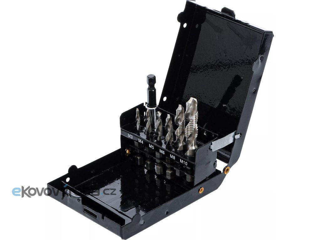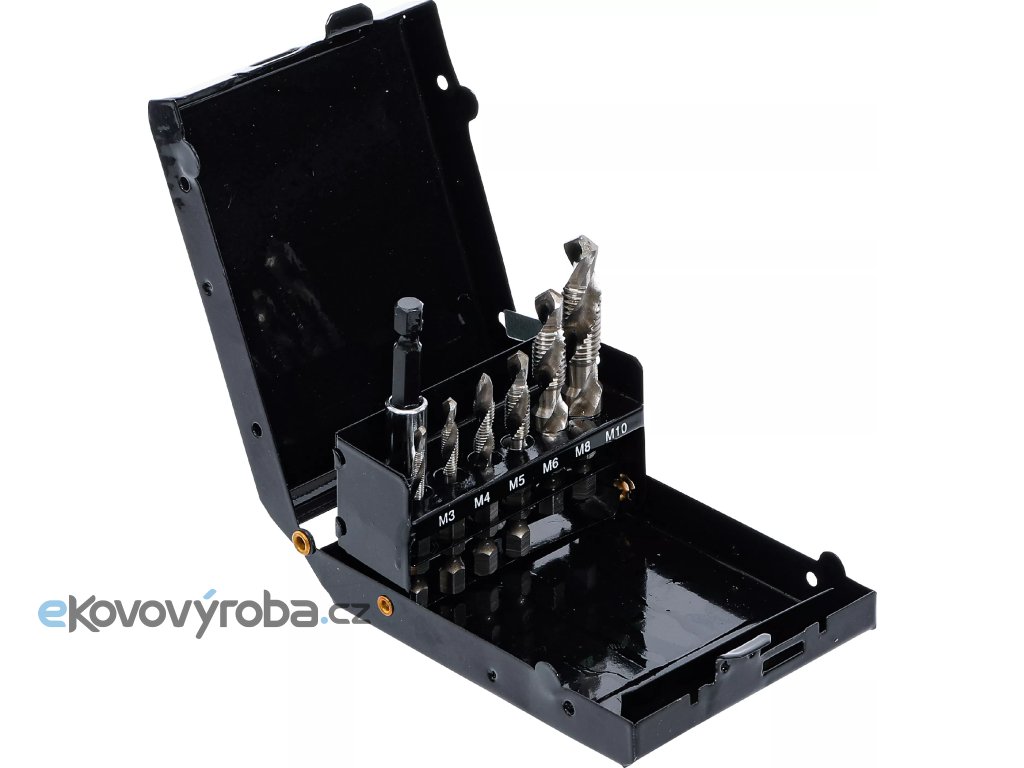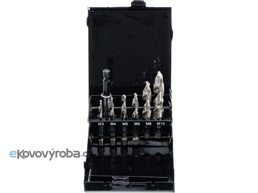 Sada kombinovaných závitníků s vrtákem k vrtání otvorů a vyřezávání závitu zároveň.