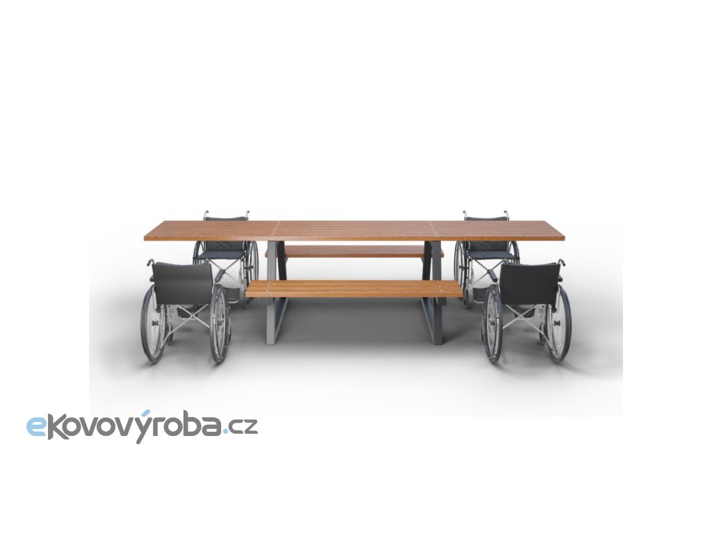 Robustní ocelová konstrukce s práškovou povrchovou úpravou je doplněna o dřevěná prkna odolná vůči povětrnostním vlivům. Sedací i stolová deska jsou vyztuženy proti prohýbání, což zaručuje vysokou stabilitu, pevnost a dlouhou životnost.