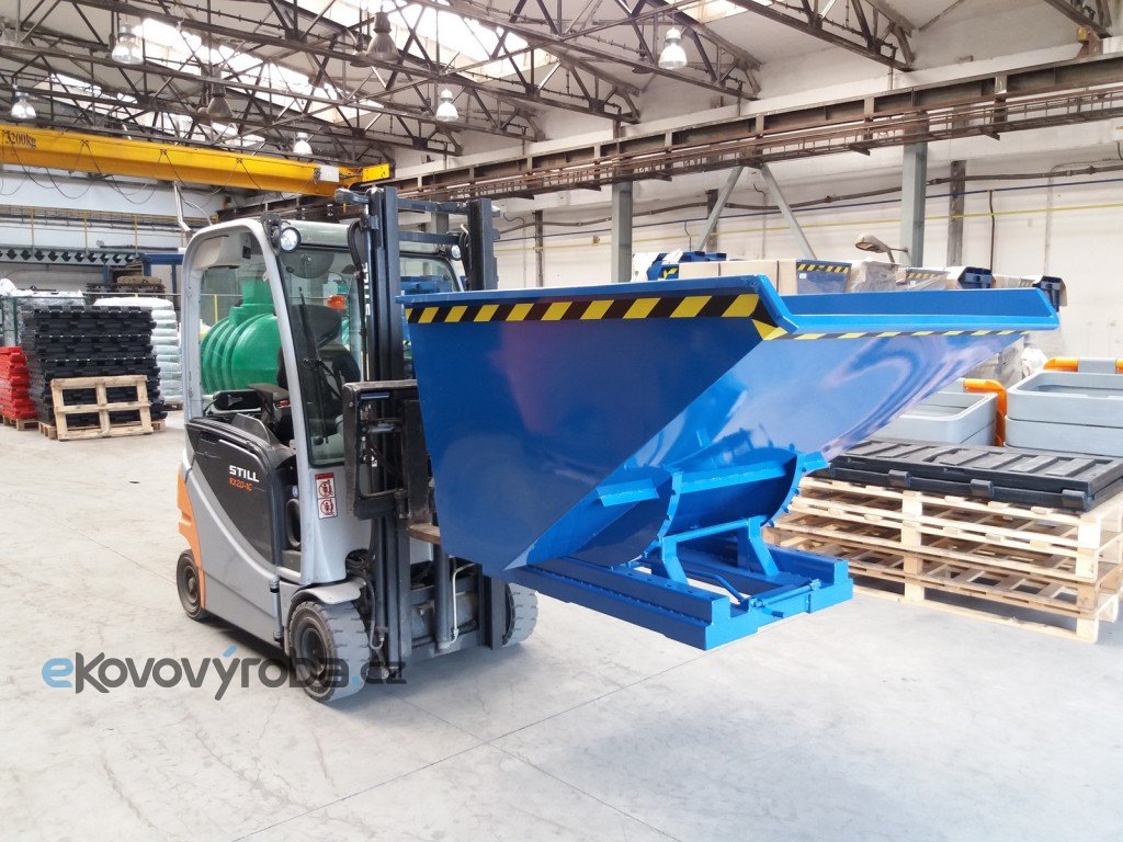 Výklopný mechanismus se spouští automaticky natlačením přední plochy kontejneru na místo výsypu. Druhá možnost výklopu je pomocí páky na spodu kontejneru.