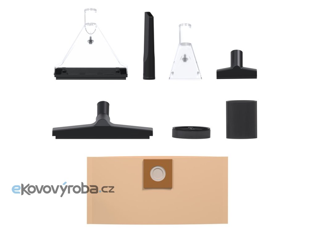 Příslušenství : mycí hubice na tvrdé povrchy, mycí hubice na čalounění, spárová hubice, kartáč na čištění, kartáč na podlahy, papírový filtr, pěnový filtr, HEPA filtr