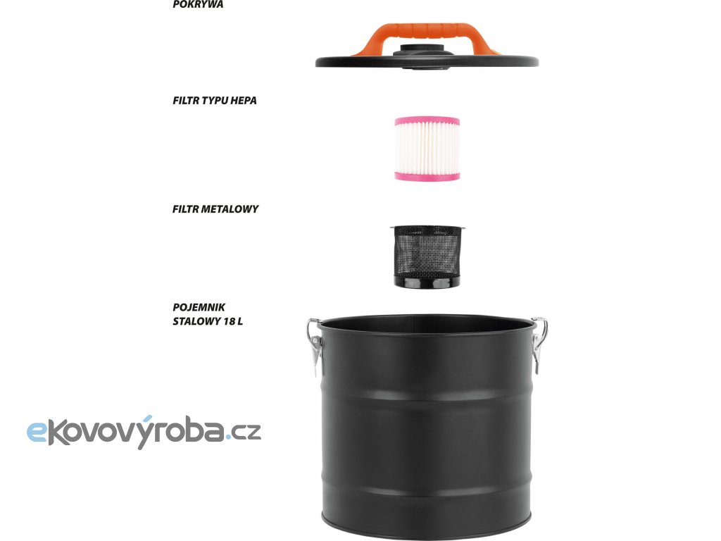Velmi kvalitní filtrační zařízení, odlučovač popela od firmy Vorel. Po připojení k vysavači působí jako filtr, který zastavuje nečistoty zbývající v peci. Ideální pro čištění krbu. Je vybaven PET filtrem namontovaným v plastovém koši. Kovová nádrž s objemem 18 l se dá velmi rychle vyčistit díky použití 2 svorek.