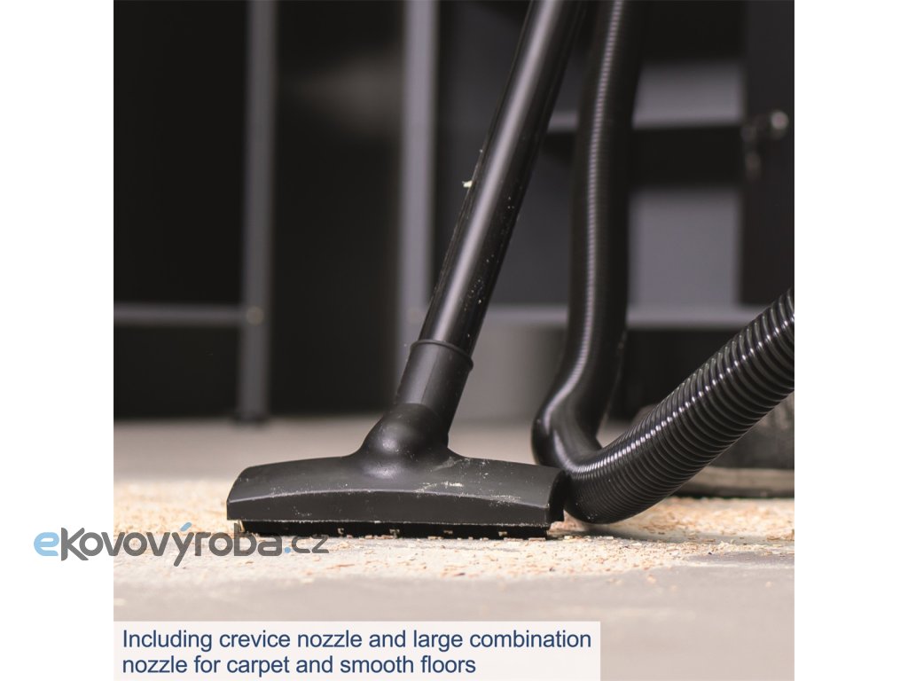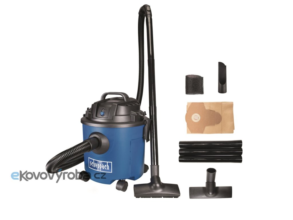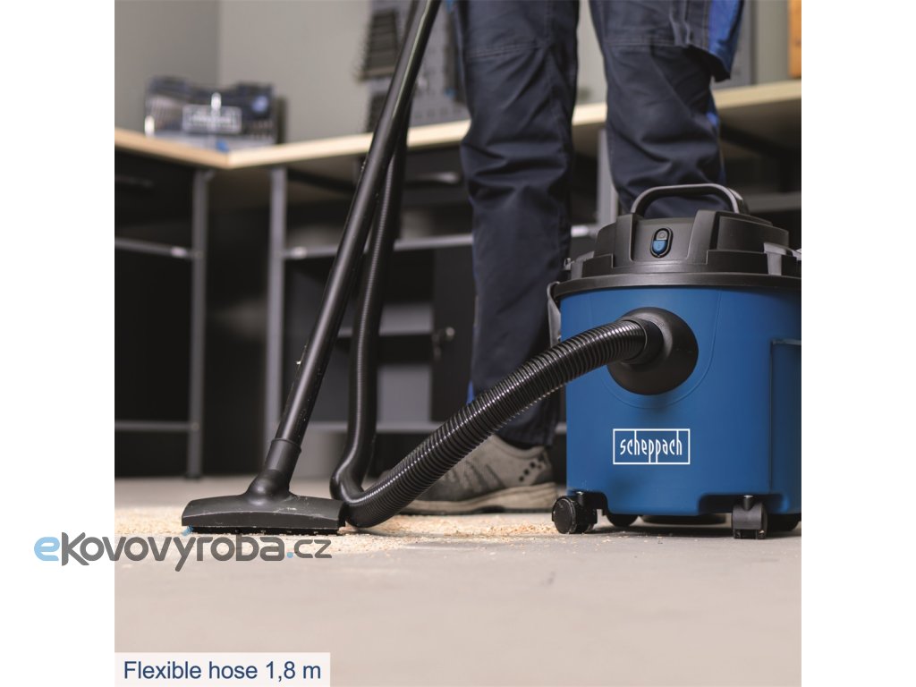 Scheppach NTS 16 je lehký, kompaktní, ale se sací silou 20 kPa velmi výkonný vysavač na mokré i suché vysávání. Kapacita jeho zásobníku je 16 l. Stroj je skvěle vybavený. Má má tělo z odolného plastu, čtyři otočná kolečka, velké madlo pro snadnou manipulaci, integrované držáky na 3 metry dlouhý kabel i příslušenství, integrovaný vývod pro funkci foukání, díky které vyfoukáte nečistoty i z těžko přístupných míst, 1,8 m dlouhou hadici, plochou hubici, hubici s tryskou a beznástrojový systém pro snadnou a rychlou výměnu filtru. Podlahová hubice má přepínání pro hladké podlahy a koberce. Díky dostatečné délce kabelu i hadice má vysavač velký akční rádius, a protože je malý a velmi lehký, snadno se ovládá a nepotřebuje ani mnoho místa na skladování. Vysavač se dodává včetně prachového vaku a pěnového filtru. Skvěle hodí do domácností, dílen, garáží i pro potřeby řemeslníků.