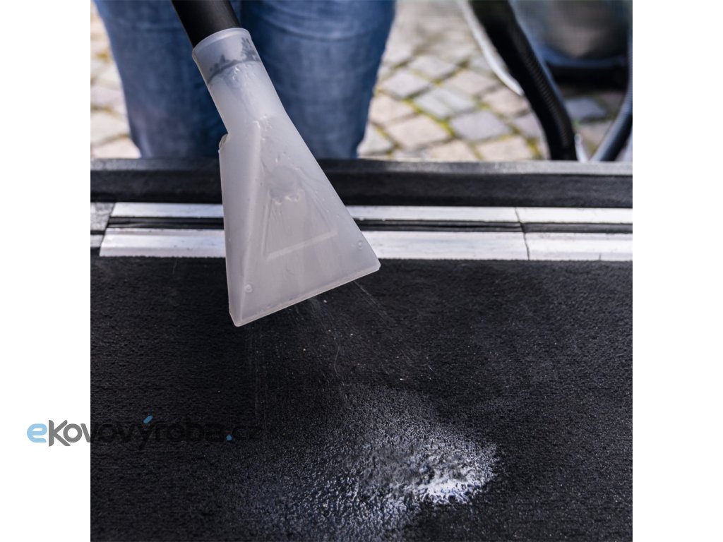 Zařízení je vybaveno praktickou hadicí, která umožňuje snadné stříkání i odsávání a odnímatelnou nádržkou na vodu a čisticí prostředek s kapacitou 3,5 litru. Odpadní voda je shromažďována v odolné nerezové nádrži o objemu 20 litrů. Ta má boční uzávěry a praktickou výpusť na špinavou vodu. Výkonný motor o síle 1600 W poskytuje dostatek energie i pro náročné úkoly. Pro pohodlnou práci má stroj pracovní dosah až 9,5 m, a to díky 2 m sací hadici s otočným adaptérem a 7,5 m přívodnímu kabelu. Integrovaný držák na kabel a příslušenství zajišťuje pořádek během práce i skladování. Sklopná rukojeť a čtyři hladce se pohybující kolečka umožňují snadný pohyb po jakémkoliv povrchu.