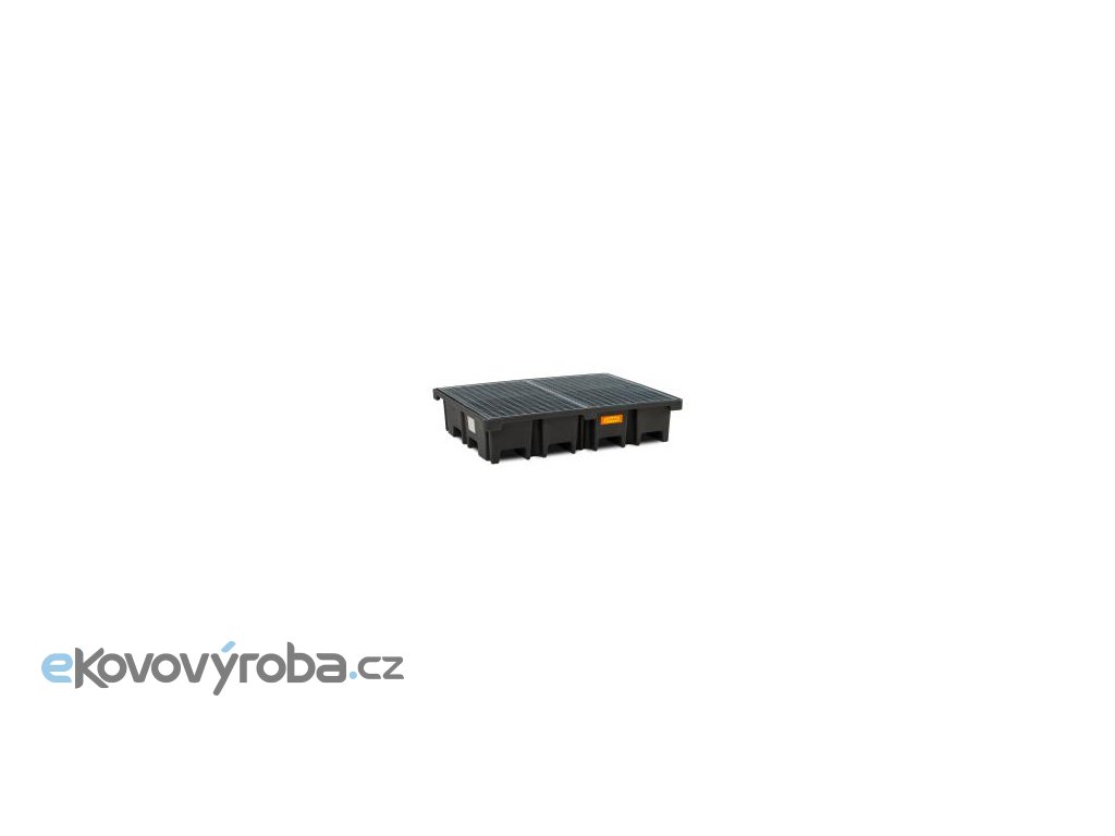 Polyethylenová záchytná vana pro 2x EURo paletu 120x80 cm vedle sebe nebo 4x sud 200 litrů s ocelovým zinkovaným roštem. Záchytná vana se dodává včetně roštu a paletu je možné umístit přímo na výstupky záchytné vany nebo umístit na rošt. Nosnost vany je 1200 kg a vana má záchytný objem 425 litrů.