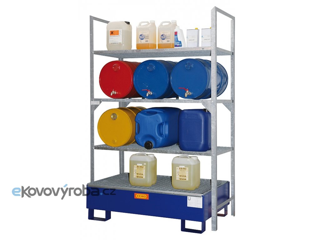 Prodlužovací jednotka pro typ 540 s ocelovou záchytnou vanou SW2 a podpěrami pro 6 x 60 l sudy a malé nádoby Rozměry: 132 x 80 x 200 cm