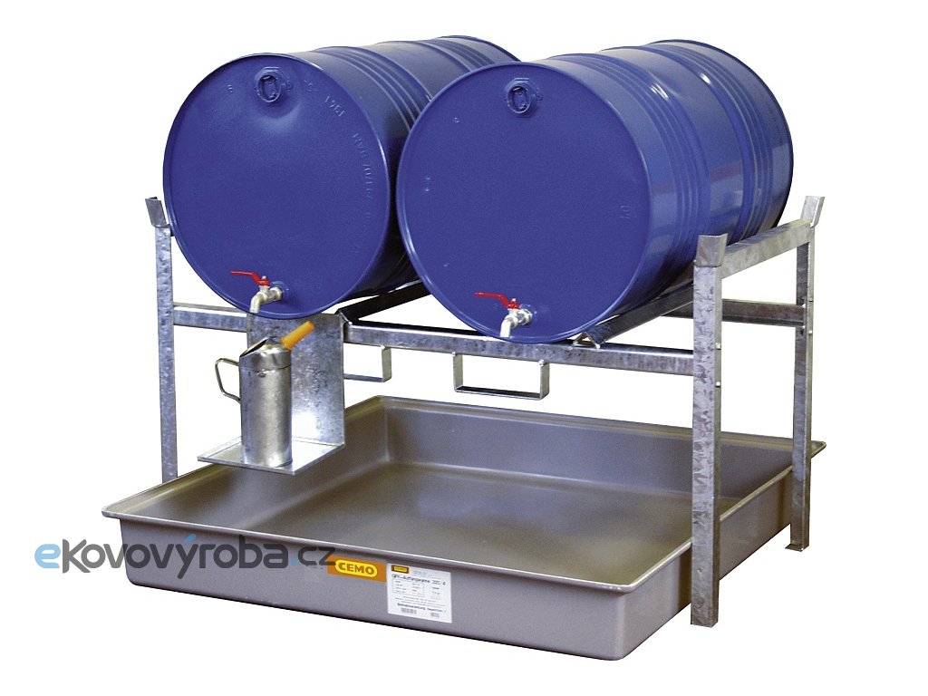 Typ 800 se sklolaminátovou záchytnou vanou 220 l a podpěrami pro 2 x 200 l sudy Rozměry: 141 x 128 x 84 cm