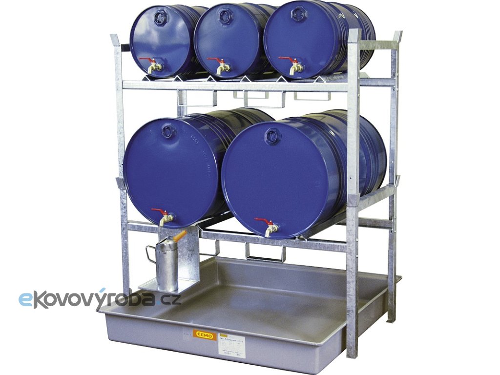 Typ 800 se sklolaminátovou záchytnou vanou 220 l a podpěrami pro 2 x 200 l a 3 x 60 l sudy Rozměry: 141 x 128 x 162 cm