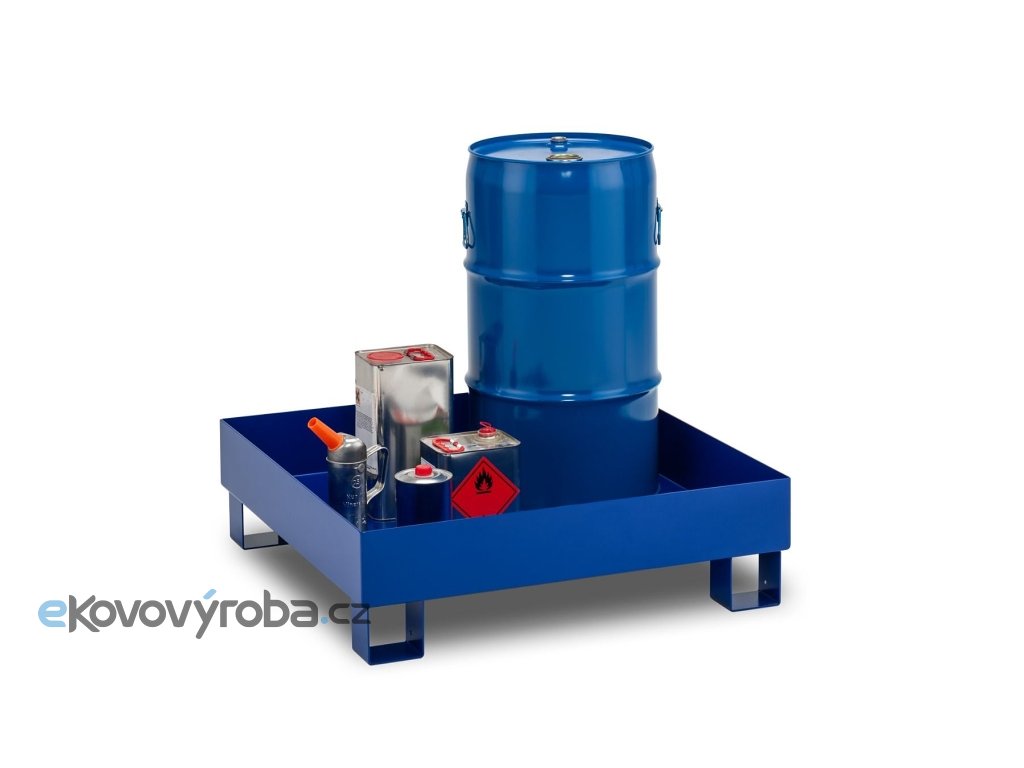 Kovová záchytná vana bez roštu lakovaná. Vana má záchytný objem 65 litrů a nosnost 400 kg a pojme jeden 60-ti litrový sud. Záchytná vana má patky, které umožňují manipulaci pomocí paletového vozíku.