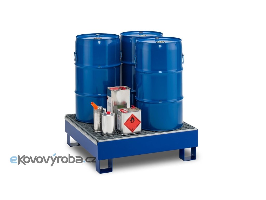 Kovová záchytná vana s roštem lakovaná. Vana má záchytný objem 65 litrů a nosnost 400 kg a pojme jeden 60-ti litrový sud. Záchytná vana má patky, které umožňují manipulaci pomocí paletového vozíku.