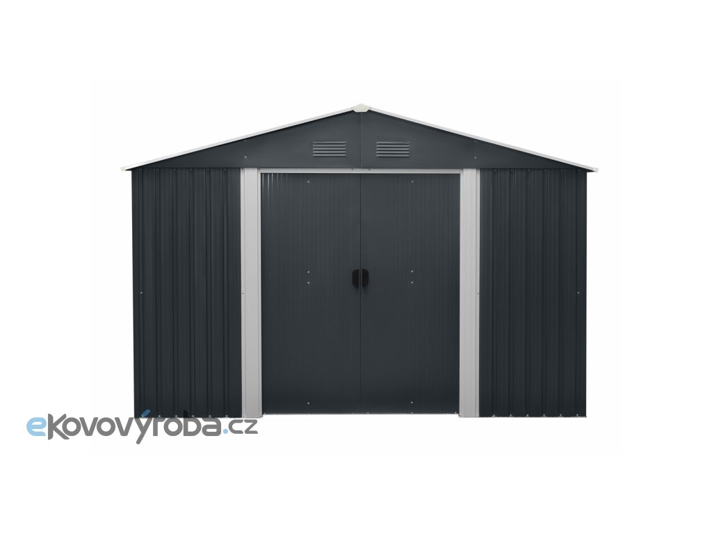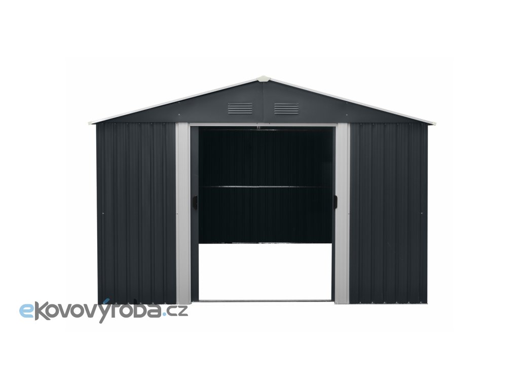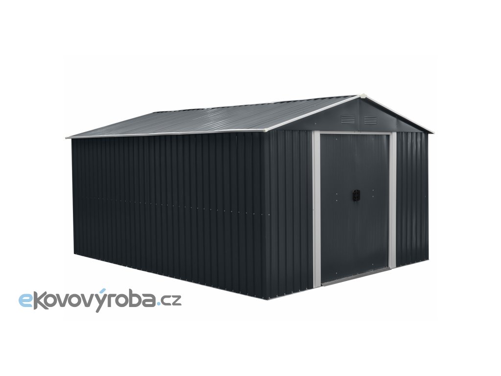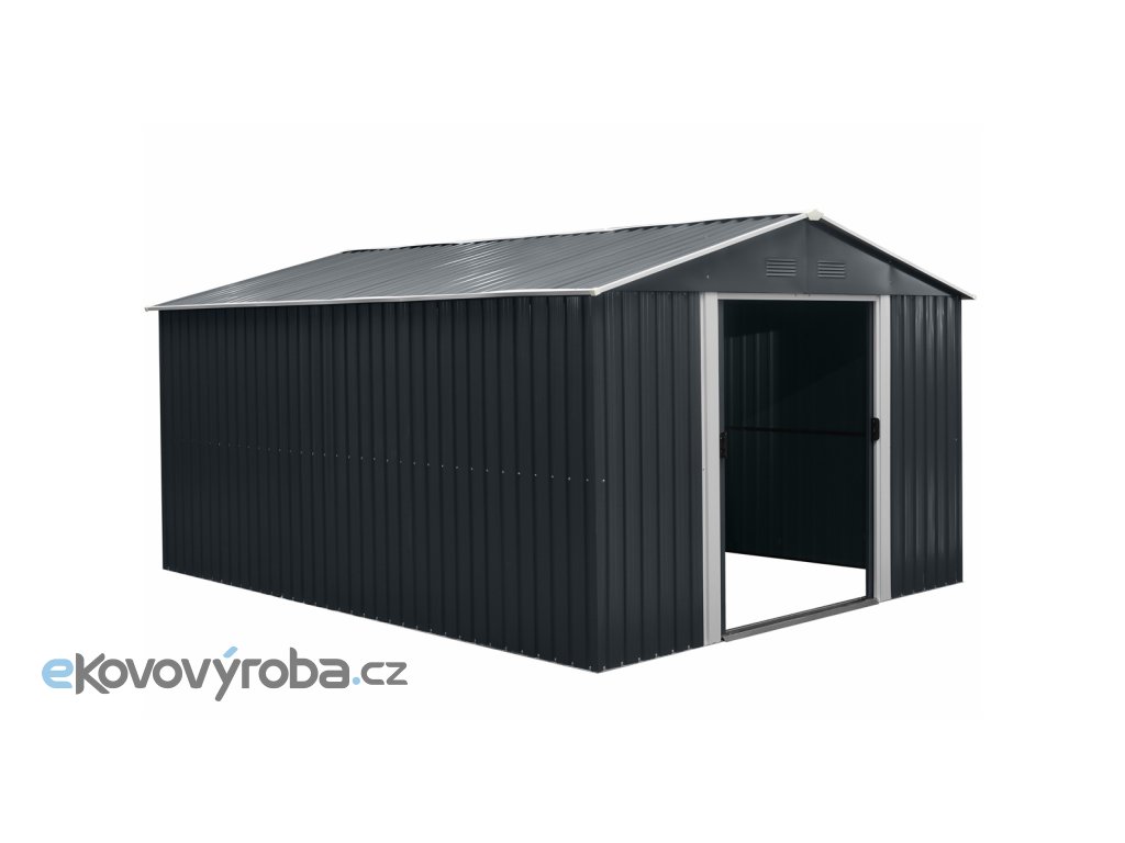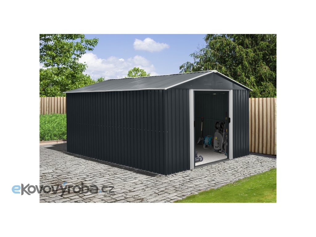 RMSA 12x10 Anthracite - zahradní domek kovový 3 x 3,7 m se sedlovou střechou antracit velký zahradní domek ideální pro uskladnění zahradní techniky a nářadí, grilovacích potřeb, zahradního nábytku, sportovního náčiní, motorky, hraček atd. domek je možno postavit svépomocí (doporučujeme 2 osoby), ideálně na pevný povrch (betonová deska, dlažba apod.) žárové zinkování rámu i profilovaných ocelových plechů spolu s kvalitní ochranou pomocí práškového nátěru jsou zárukou dlouhé životnosti a minimálních nároků na údržbu vyztužení střechy i bočních stěn pro zvýšenou odolnost vůči větru i sněhu vysoké dvoudílné posuvné dveře s madly je možné bezpečně uzamknout pomocí standardně dodávaného zámku 4 větrací otvory pro dobré proudění vzduchu a ochranu před vlhkostí moderní vzhled a elegantně působící barevná kombinace s oblíbenou antracitovou barvou Případné bezpečnostní pokyny, výstrahy a upozornění jsou součástí návodu k obsluze, který je k dispozici v sekci KE STAŽENÍ.