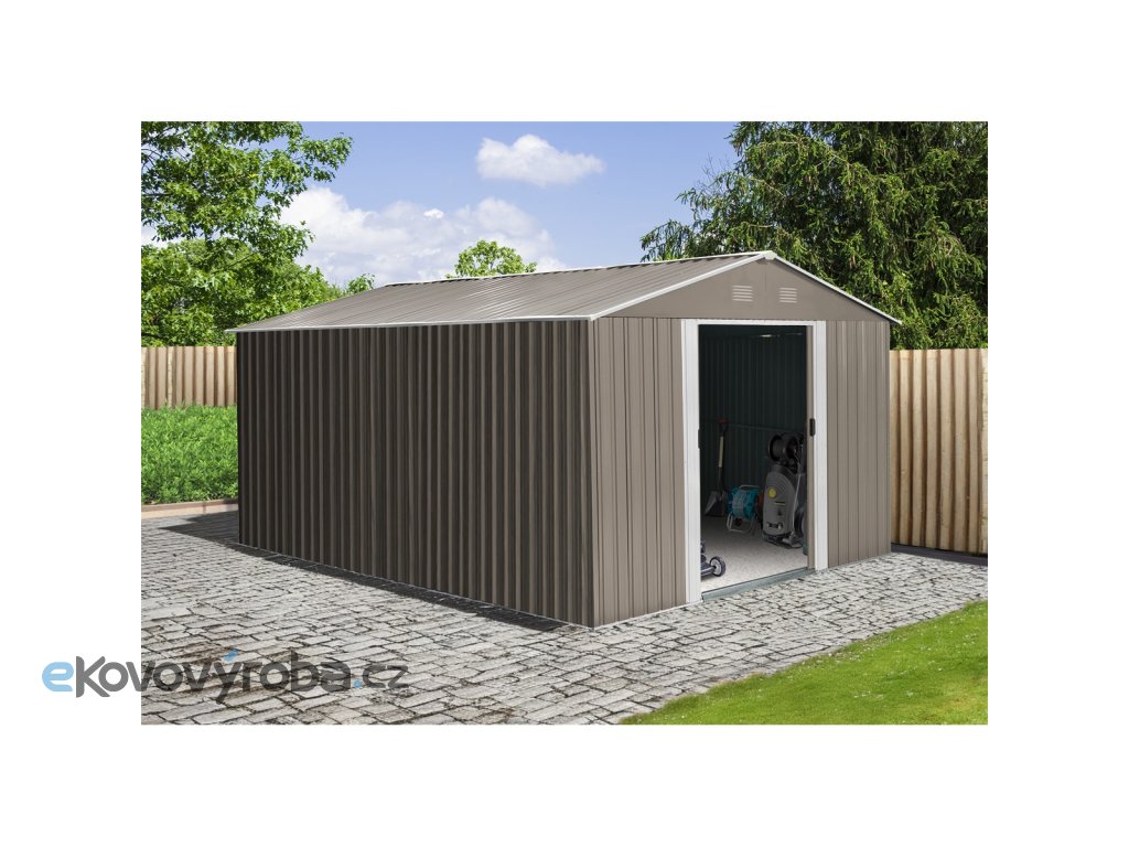 RMSA 12x10 Anthracite - zahradní domek kovový 3 x 3,7 m se sedlovou střechou hnědý